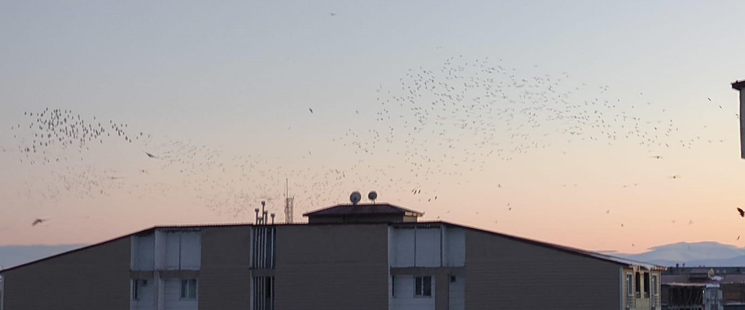 Kent merkezinde dün akşam saatlerinde gökyüzü, karga ve sığırcık sürüleriyle doldu. Yüzlerce kuşun aynı anda havalanmasıyla, birbirlerine çarpmadan, büyük bir uyum içinde gerçekleştirdiği ani manevralar görsel bir şölene dönüştü.
