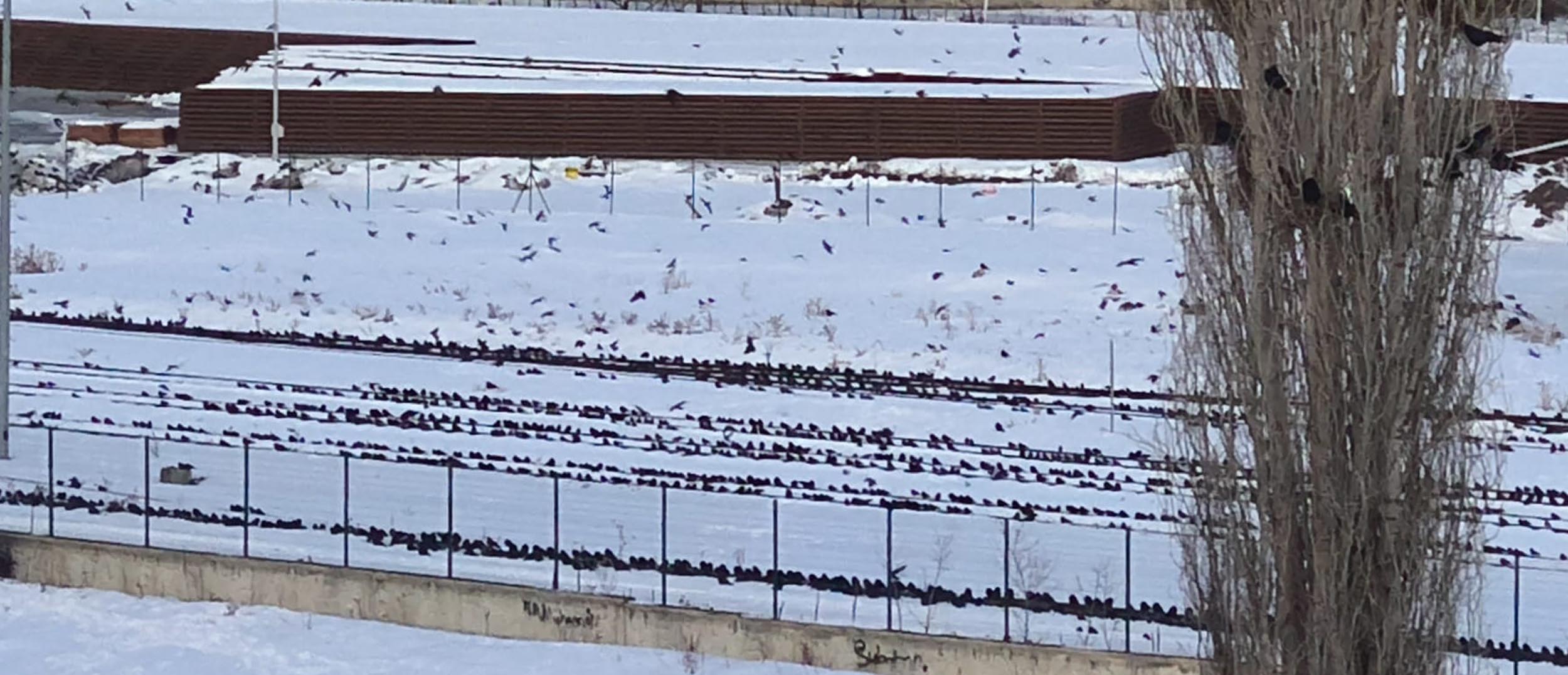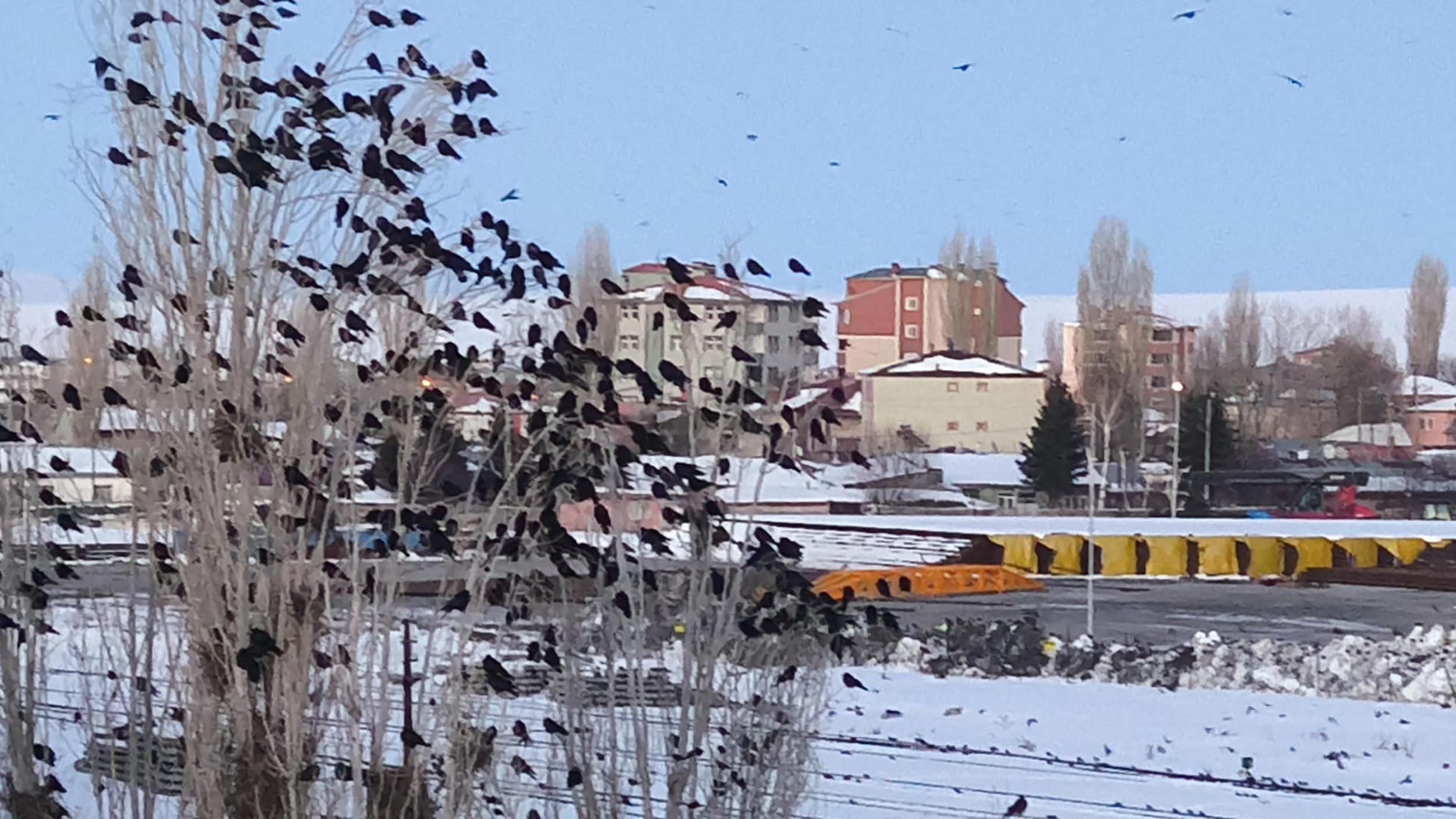 Kars’ta gökyüzünde sürü halinde uçan karga ve sığırcıklar güzel görüntüler oluşturdu. Kuşların gökyüzünde uyum içinde uçması, görüntülendi.