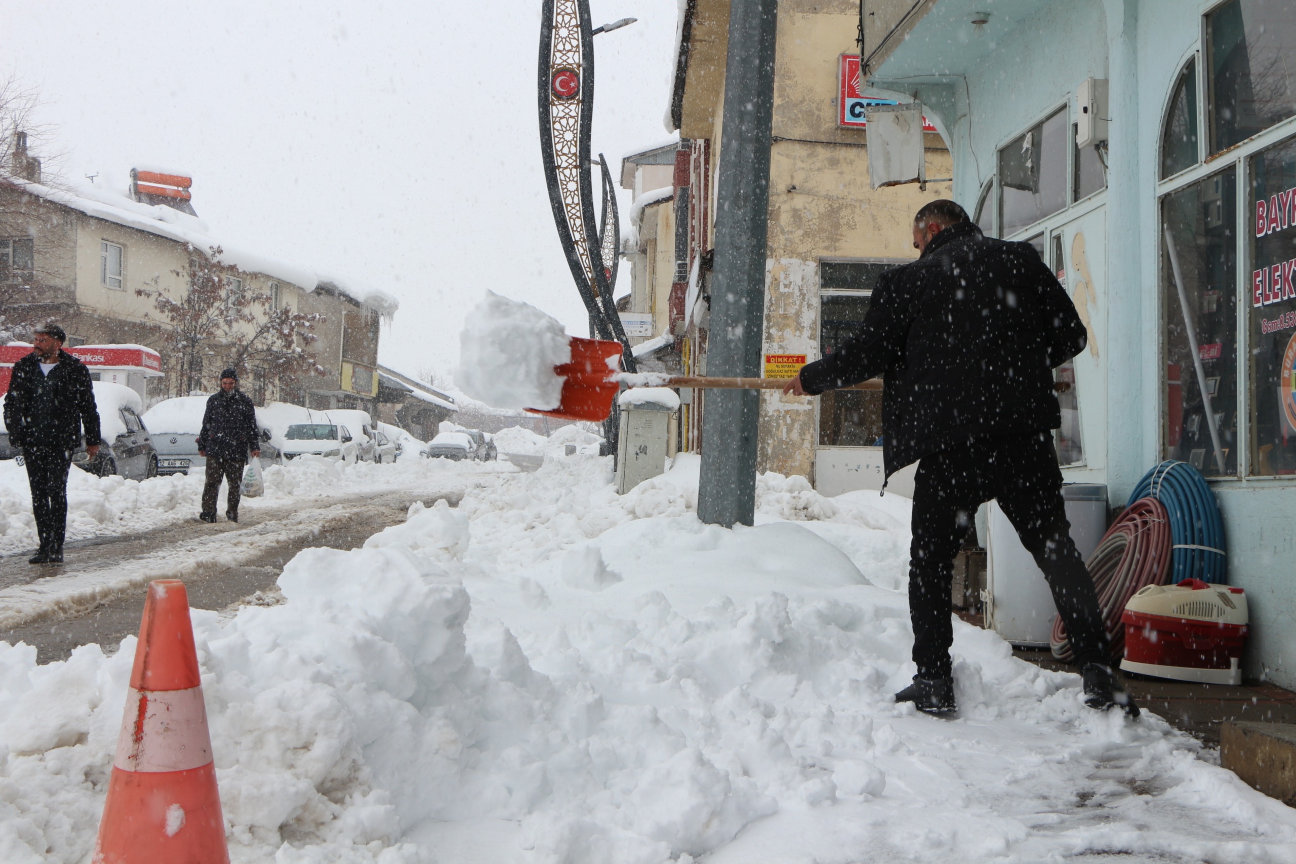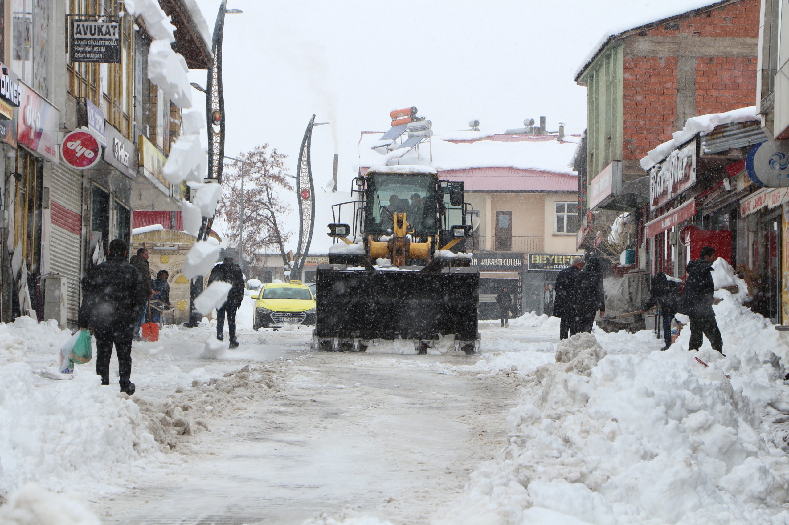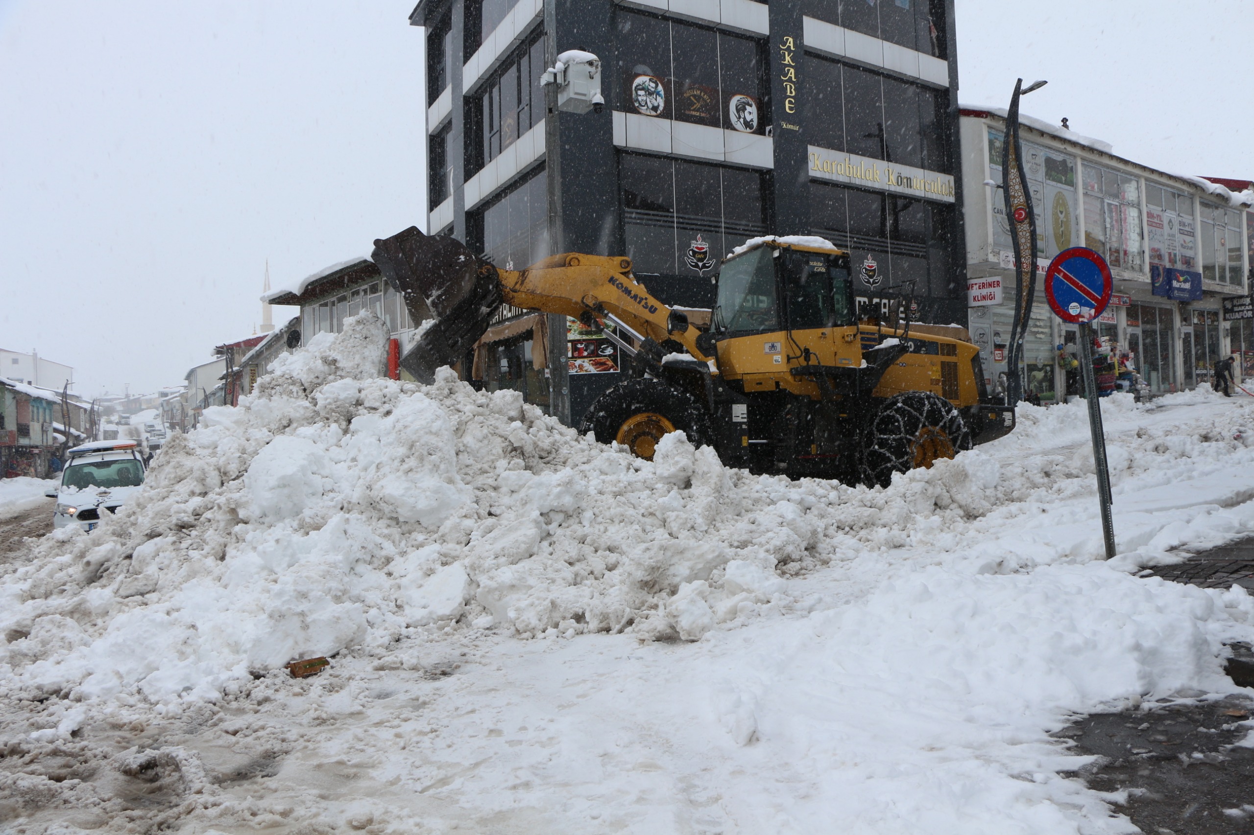 Kar kalınlığının yer yer 1 metreye ulaştığı ilçede ekipler yolları açmak için çalışma başlattı.