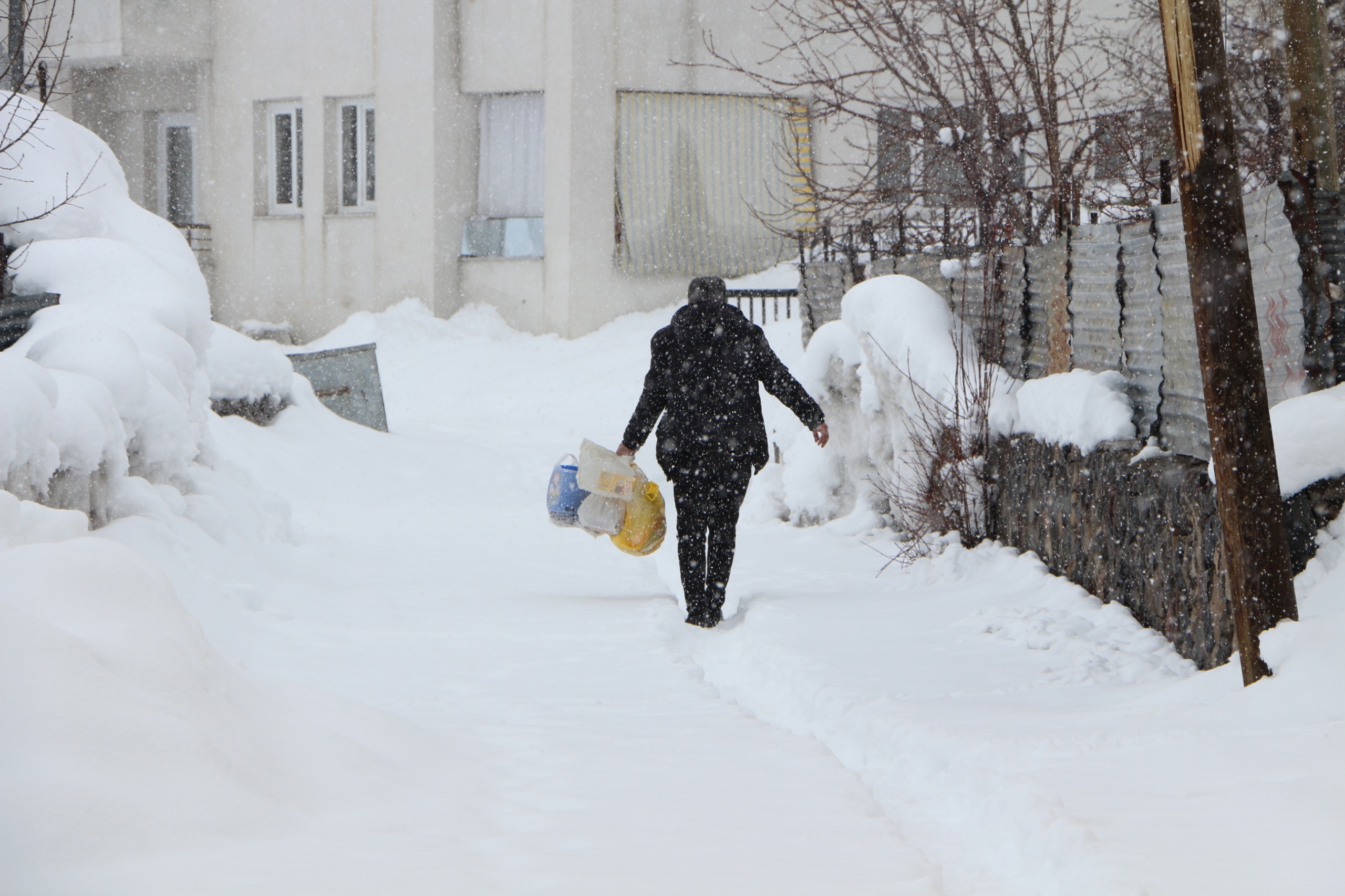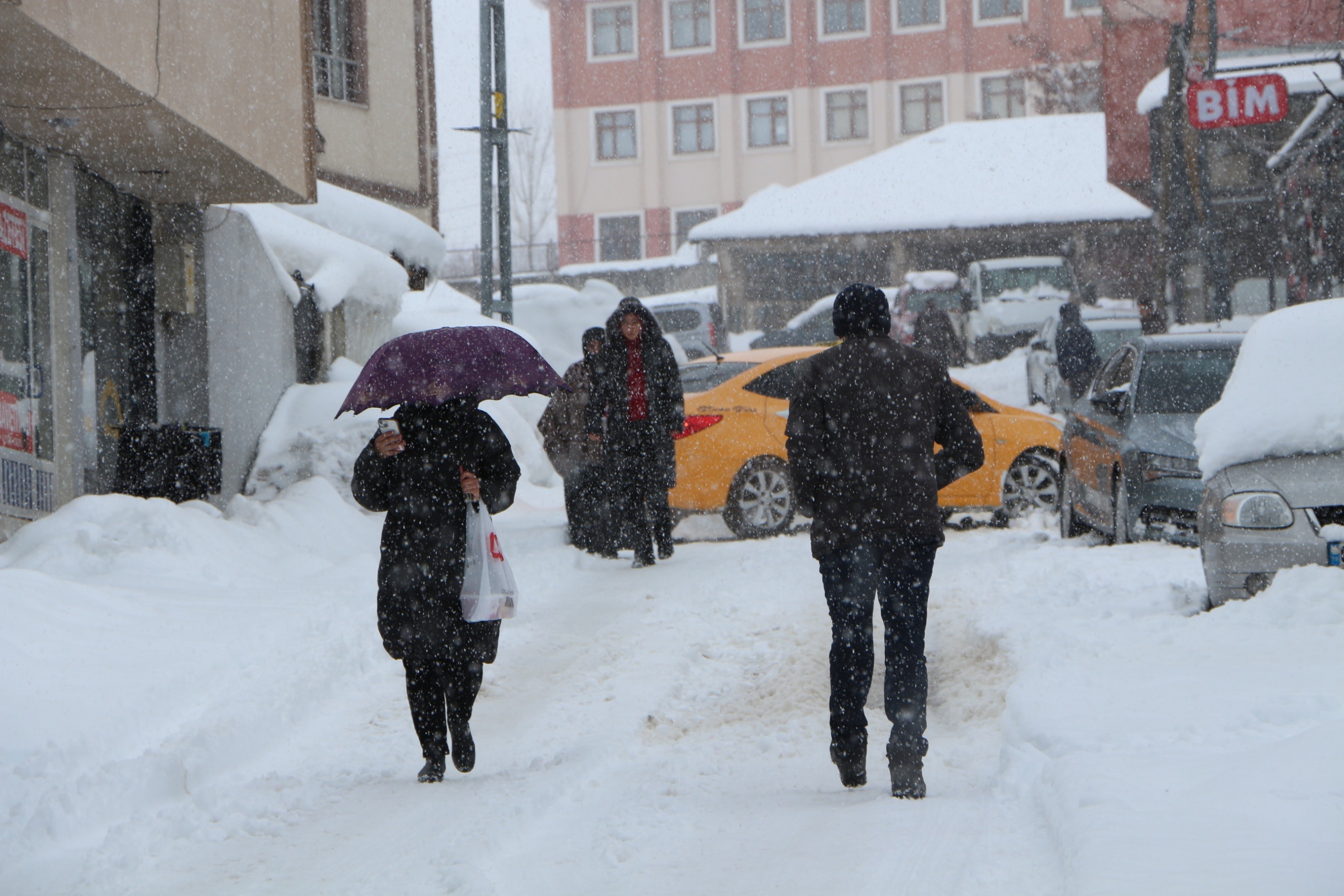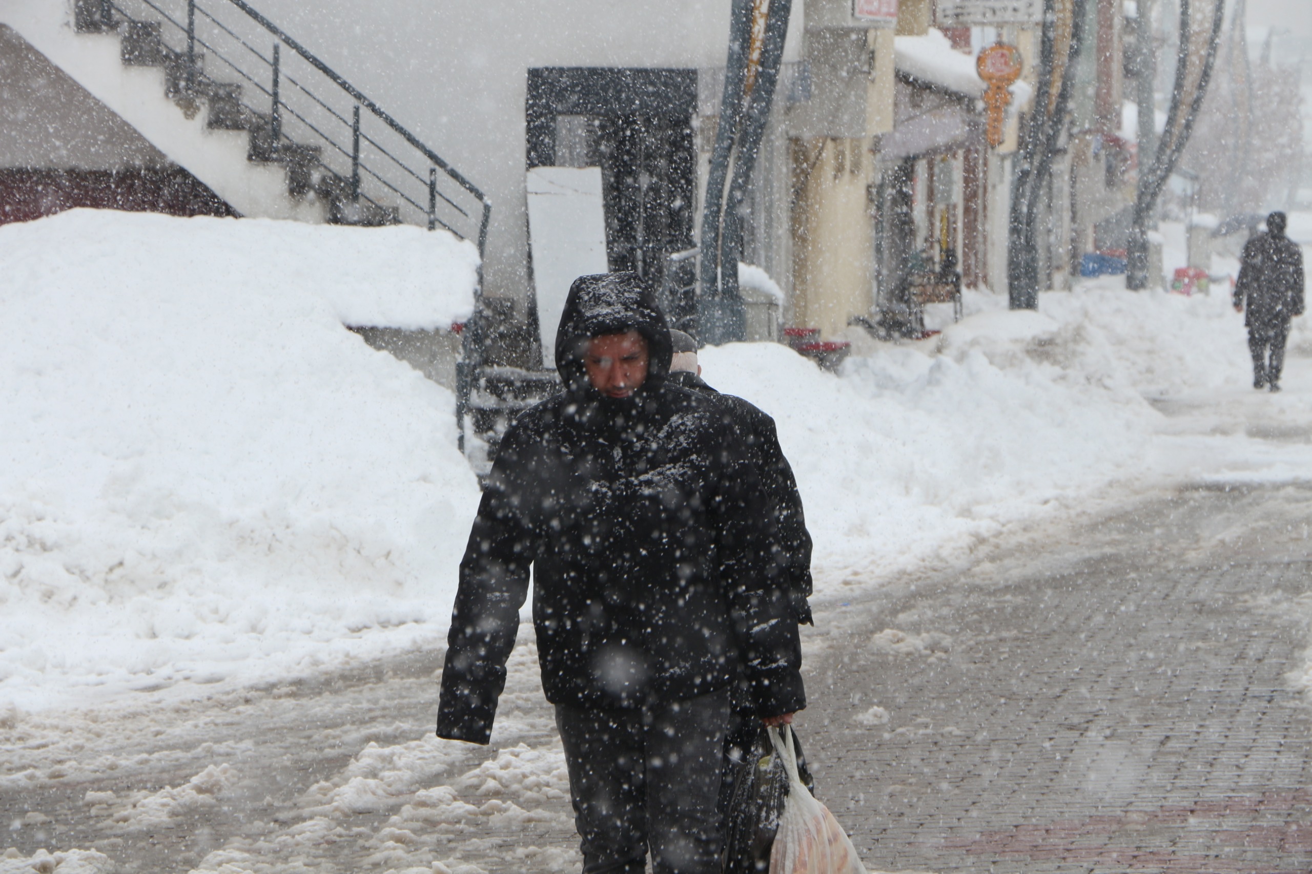 Kar kalınlığının yer yer 1 metreye ulaştığı ilçede ekipler yolları açmak için çalışma başlattı.