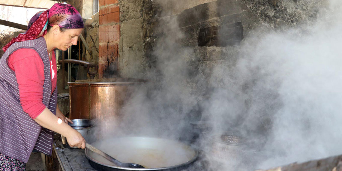 Erzurum’un Olur ilçesi kırsal Ormanağzı Mahallesi’nde coğrafi işaret belgeli ‘Karnavas dut pekmezi’ mesaisi başladı.