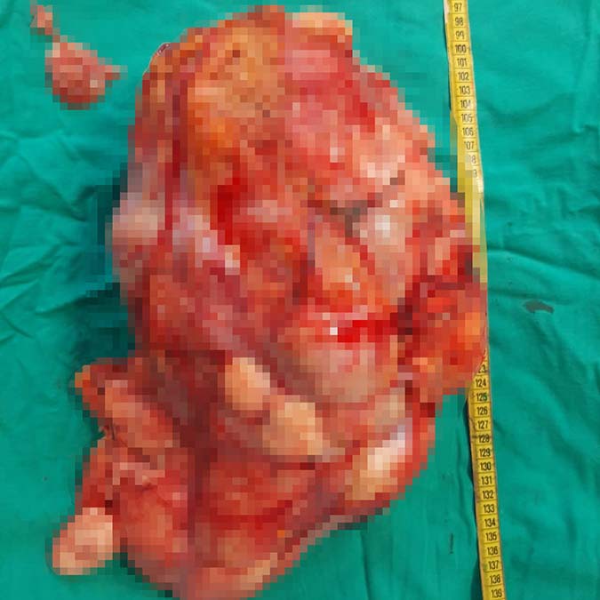 Tümörün adeta bir bebek büyüklüğünde olduğunu belirten Doç. Dr. Sarıtaş, operasyonla ilgili bilgi verdi. Bu tarz tümörlerin erken teşhisinin zorluğundan bahseden Sarıtaş, “Hastada karın arka duvarı dediğimiz yağlı dokudan köken alan bir tümör tespit ettik. Bu tarz kitleler çok fazla bulgu vermez. Bulgu verdiğinde ise büyük boyutlara ulaşmış olur. Ameliyat sonrası ölçümlerimizde ortalama 10 kilo ağırlığında, 40 santimetreye yakın dev bir kitleyle karşılaştık” diye konuştu.