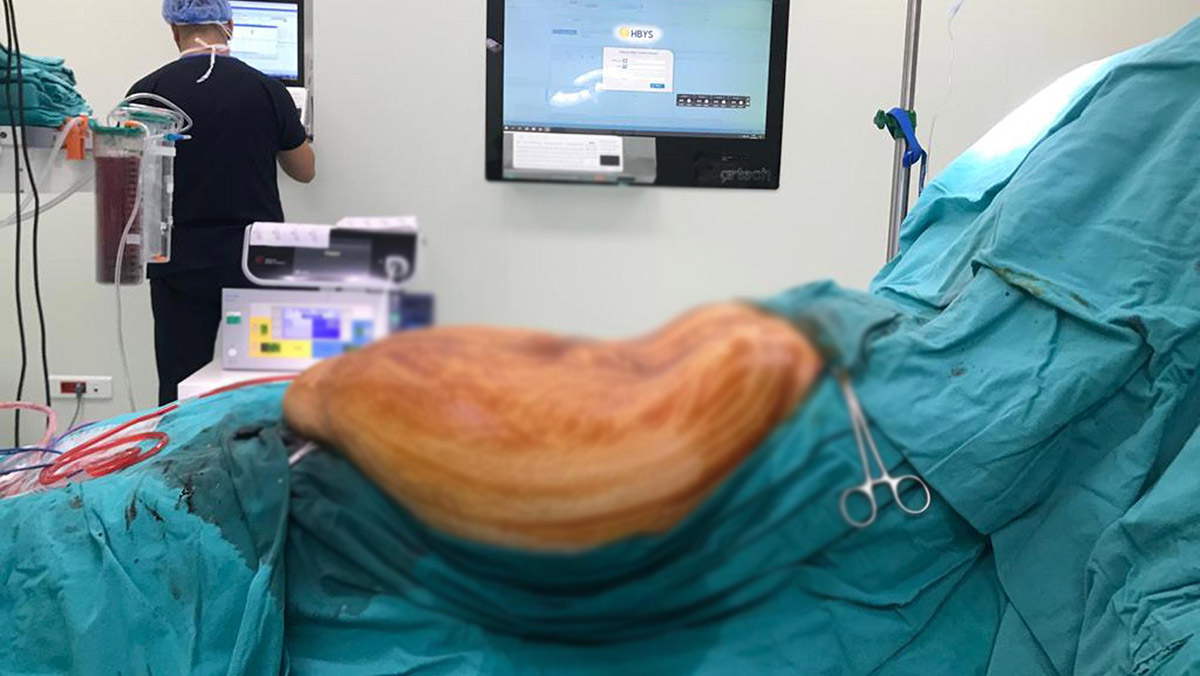 Op. Dr. İhsan Gündüz, hastanın uzun zamandır karın şişkinliğinin bulunduğunu ve hastaneye başvurmakta geciktiğini söyledi. Op. Dr. Gündüz, “Bizi şaşırtacak derecede büyük bir kitle ile karşılaştık. Batın içerisinde hemen her organa temas eden, tam kaynağı da belli olmayan büyük bir kitleydi.
