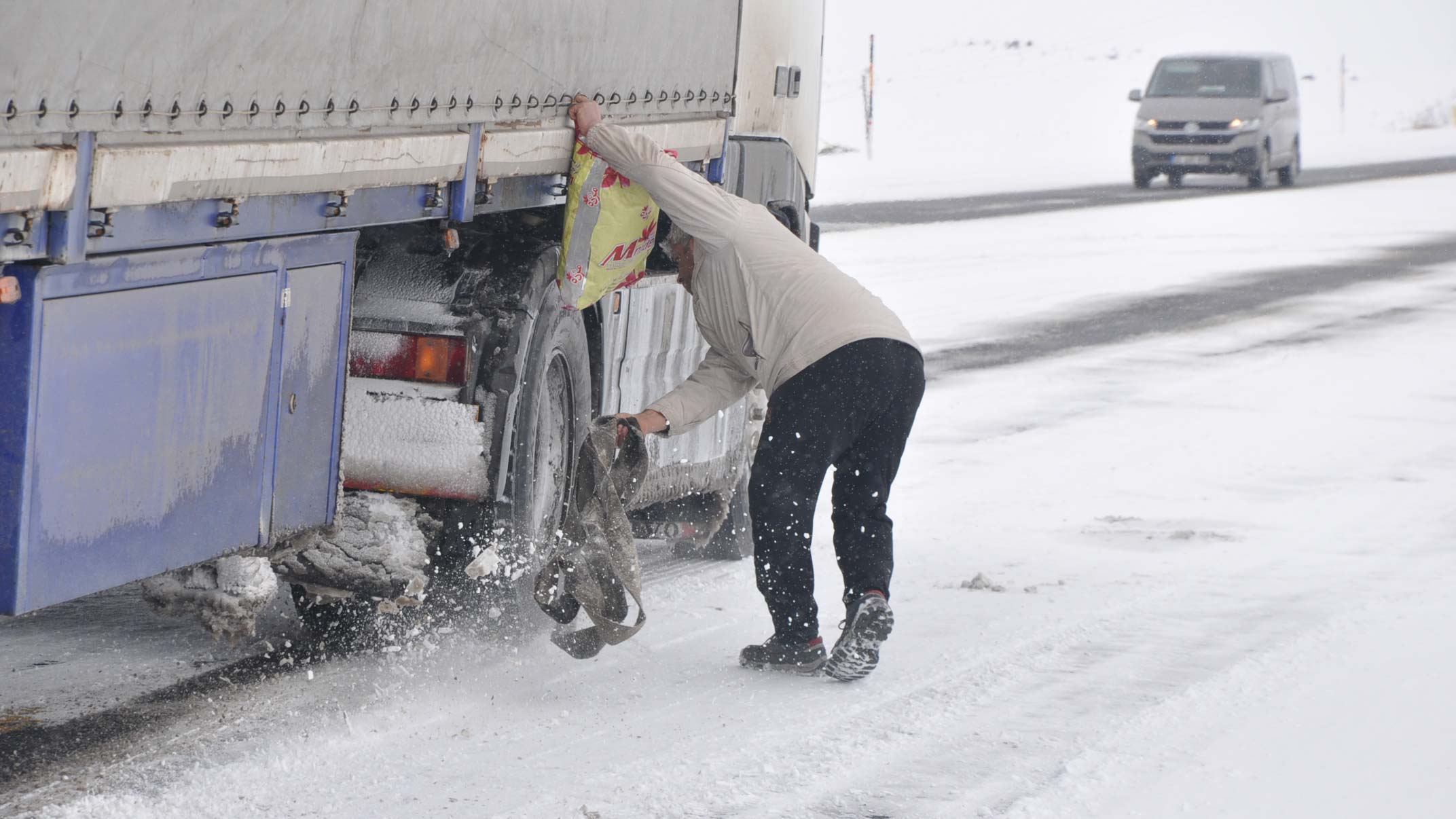 Kars’ta etkili olan kar yağışı ve tipi nedeniyle İran ve Gürcistan’dan gelen TIR sürücüleri yolda kaldı. Kars-Göle yolu ise araç trafiğine kapatıldı.