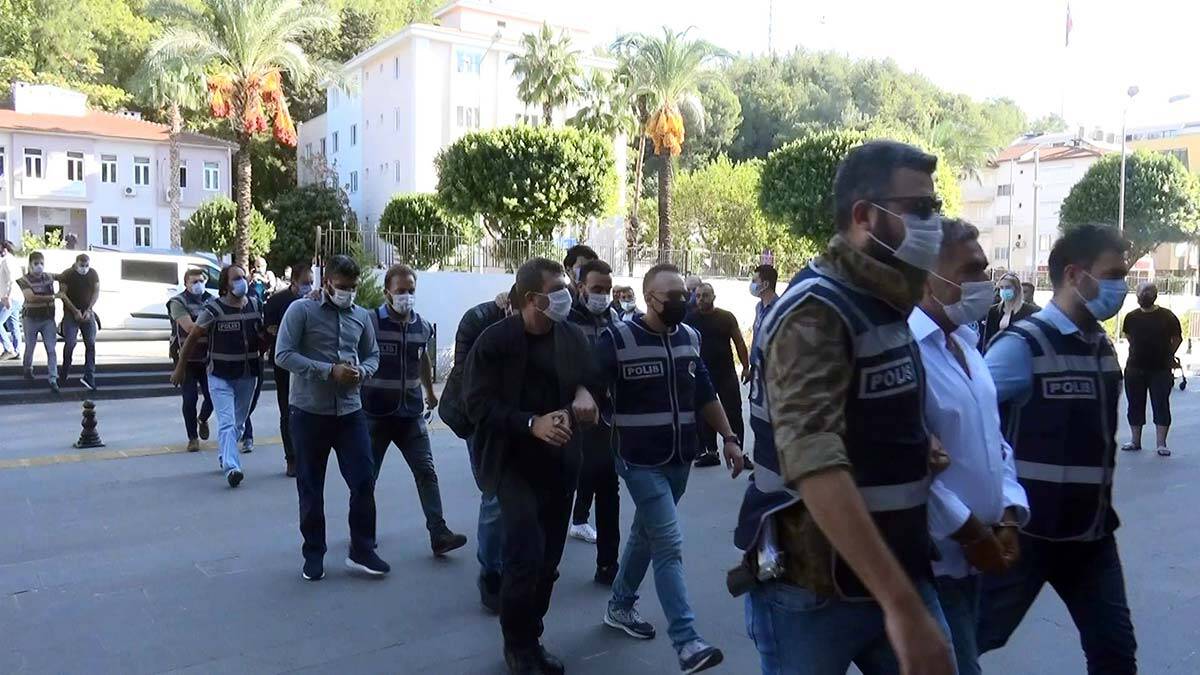 Antalya Emniyet Müdürlüğü Gasp Büro Amirliği’nde 4 gün ifade veren 14 şüpheli ise işlemlerinin ardından dün sabah saatlerinde Manavgat’a getirildi. Manavgat Devlet Hastanesi’nde sağlık kontrolünden geçirilen 14 şüpheli ardından adliyeye sevk edildi. Manavgat Adliyesi önünde çevik kuvvet ekipleri tarafından güvenlik önlemleri alınırken, şüphelilerin ifadeleri ve yapılan aramalarda ele geçirilen çeşitli malzemeler dosyalar ve çuvallarla taşındı.