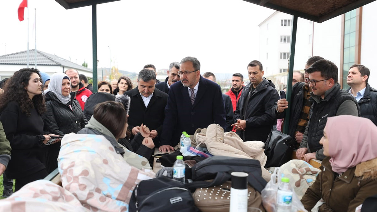 Gençlik ve Spor Bakanı Mehmet Muharrem Kasapoğlu, Düzce’deki depremde hasar gören yurtlar ziyaret edip, öğrencilerle bir araya geldi.
