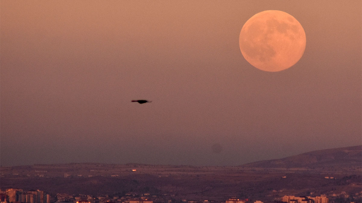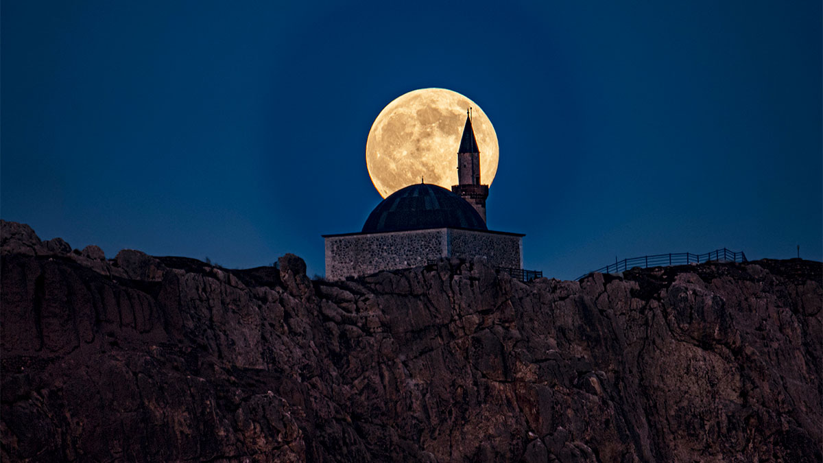Manisa ve Türkiye genelinde gökyüzünde parlayan dolunay, 2025 yılının en büyük ve en parlak ‘Kunduz Ayı’ olarak kayıtlara geçti. Süper Ay olarak da adlandırılan bu doğa olayı, ayın yörüngesinin dünyaya en yakın noktasına denk gelmesiyle ortaya çıktı. Bu sayede ay, normalden yüzde 14 daha büyük ve yüzde 30 daha parlak göründü. Manisa’da tarihi Manisa Kalesi’nin eteğinde, Fetih Mescidi’nin silueti ve dalgalanan Türk bayrağıyla birlikte görüntülenen Süper Ay, görenleri hayran bıraktı. Kentte birçok vatandaş, bu eşsiz doğa olayını cep telefonları ve fotoğraf makineleriyle ölümsüzleştirdi.