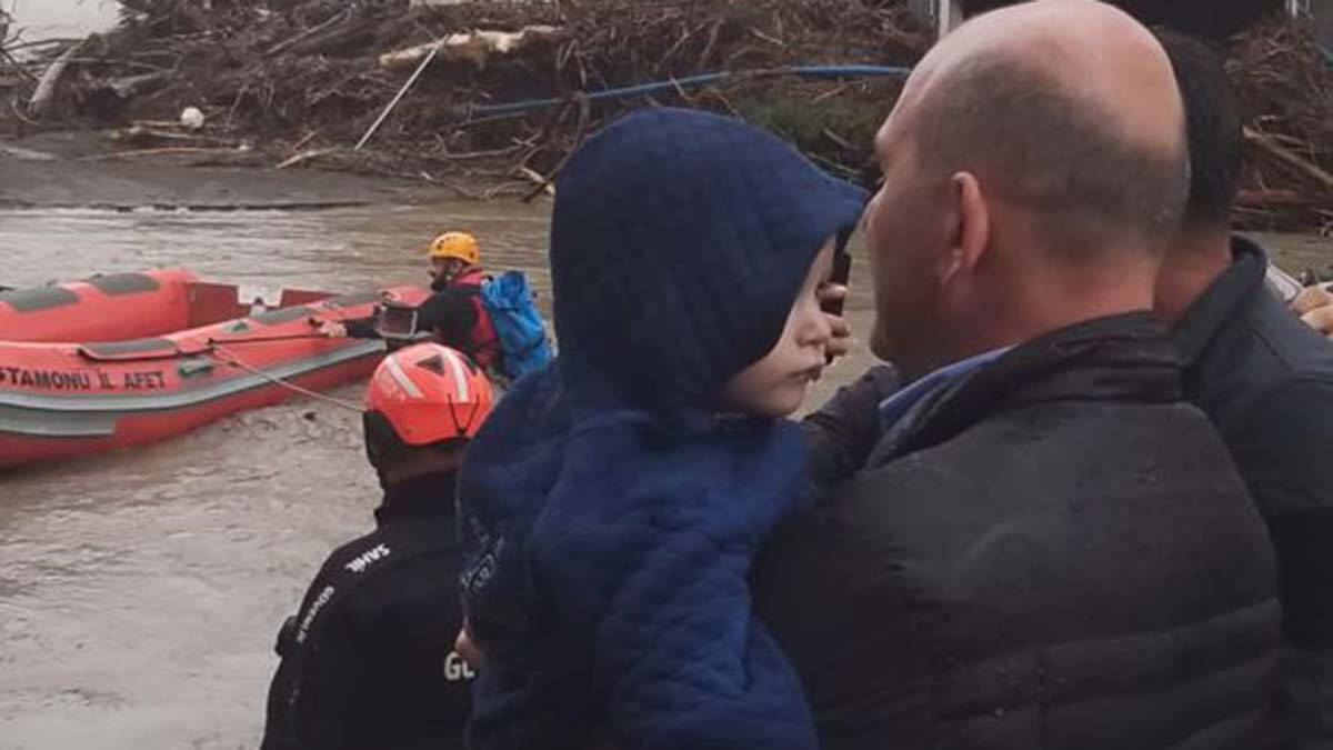İçişleri Bakanı Süleyman Soylu, selin vurduğu Kastamonu’nun Bozkurt ilçesinde arama-kurtarma çalışmalarını takip ediyor. Dün akşam saatlerinden itibaren ilçede bulunan ve yetkililerden bilgi alan Bakan Soylu, ilçe merkezinde AFAD ekiplerinin botla gerçekleştirdiği kurtarma çalışmalarını izledi. Soylu, mahsur kaldığı alandan botla alınarak kurtarılan çocuğu kucağına alarak teskin etmeye çalıştı.