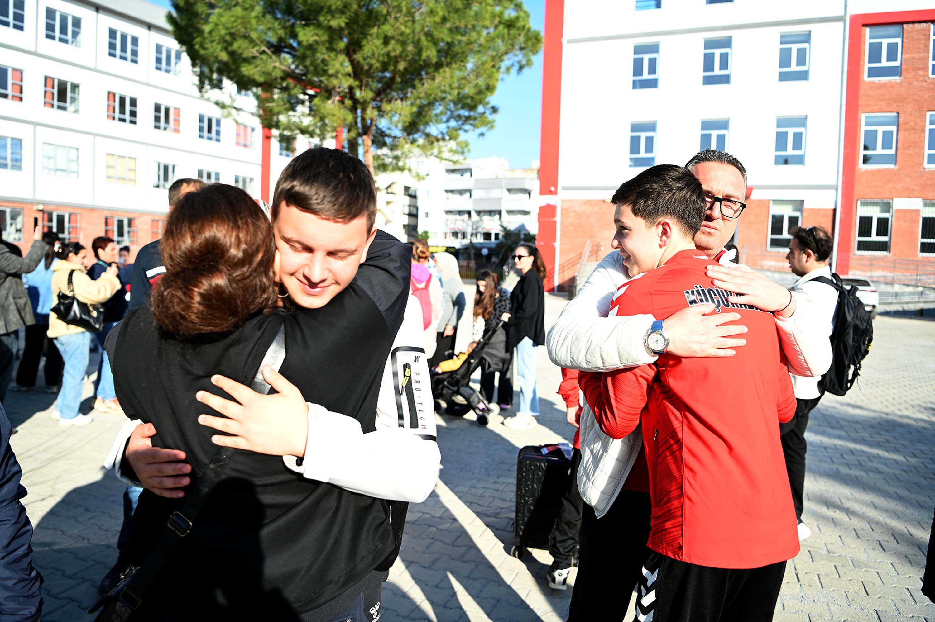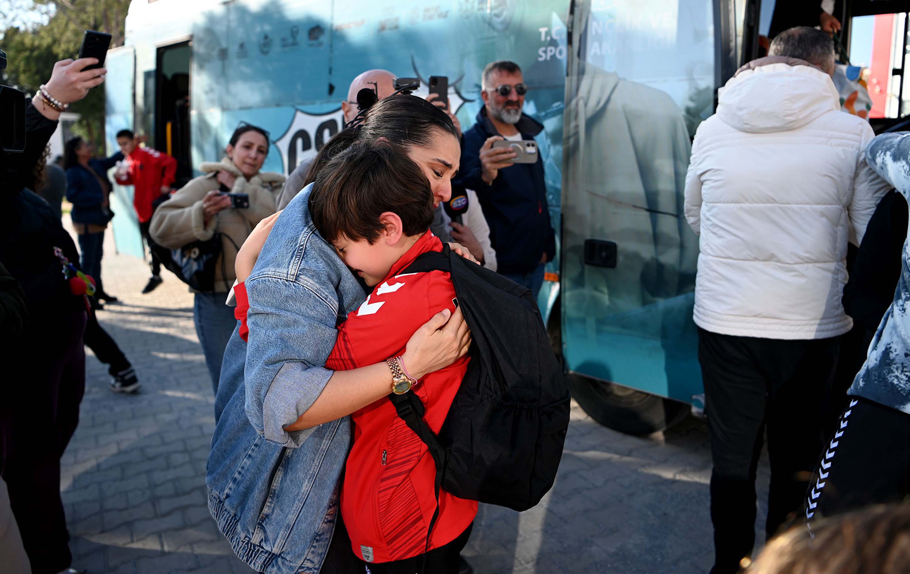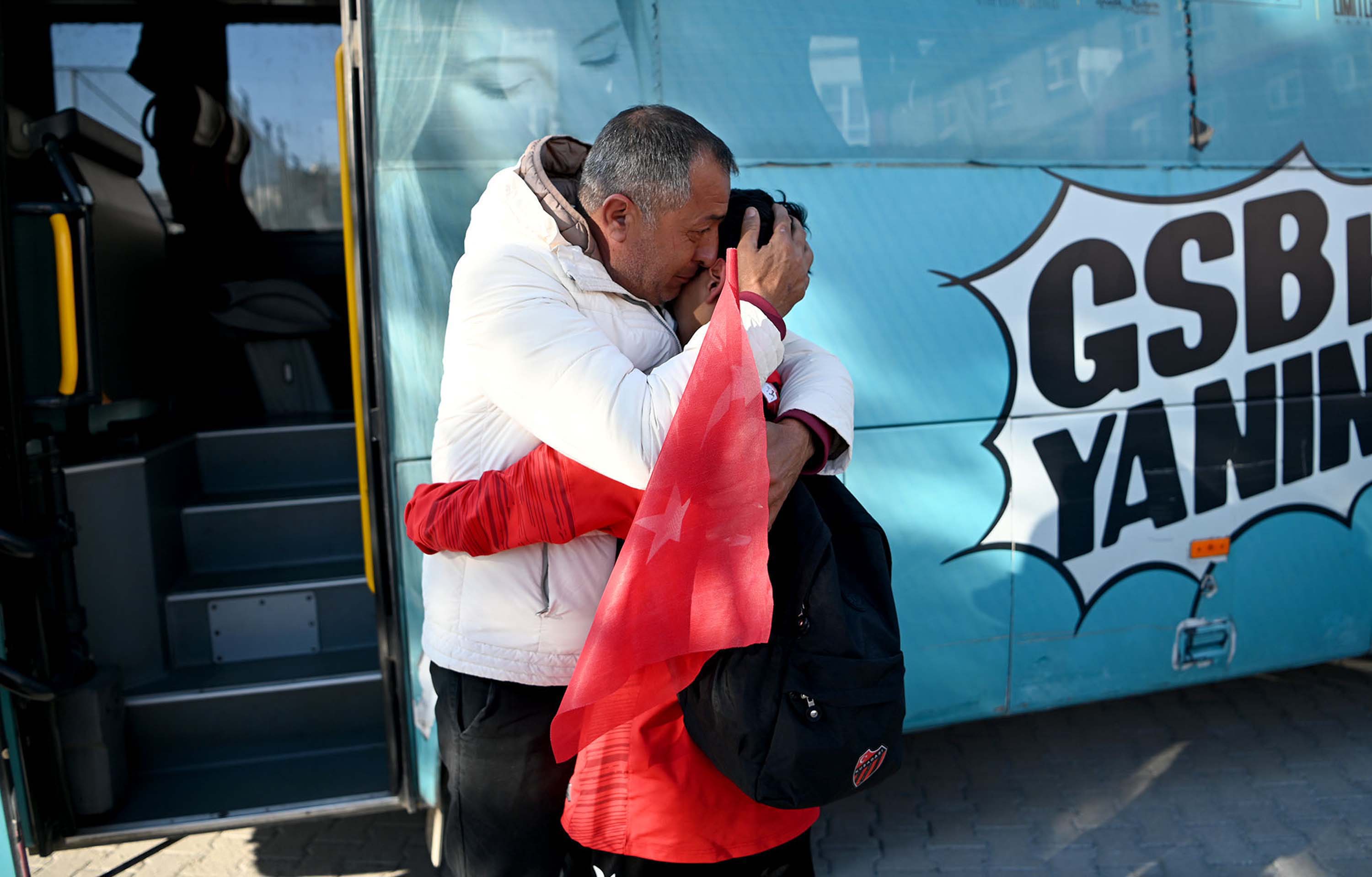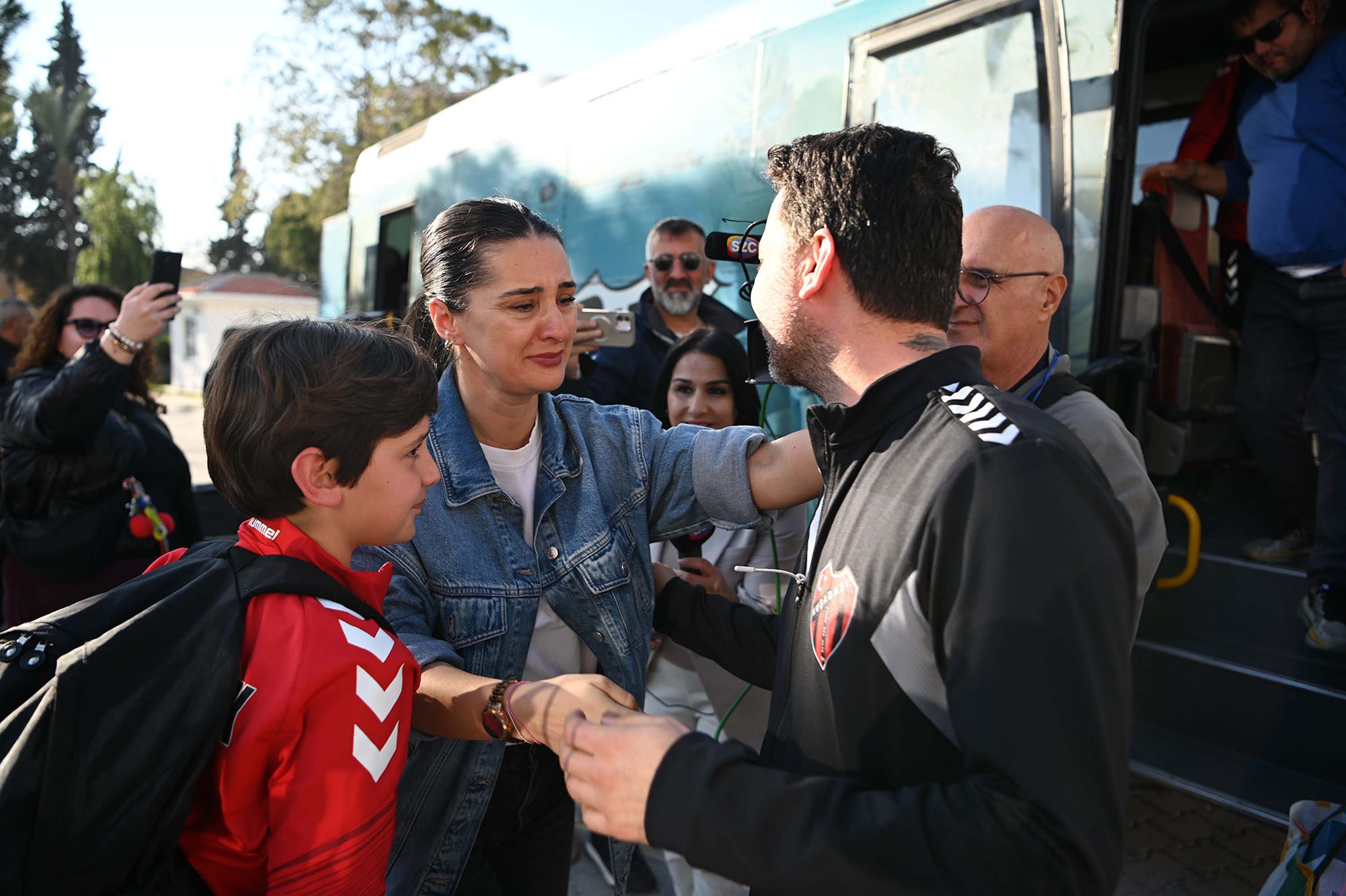 Kulüp tesislerine gelen kafile, aileleri ve yakın akrabaları tarafından mutluluk gözyaşları içerisinde karşılandı.