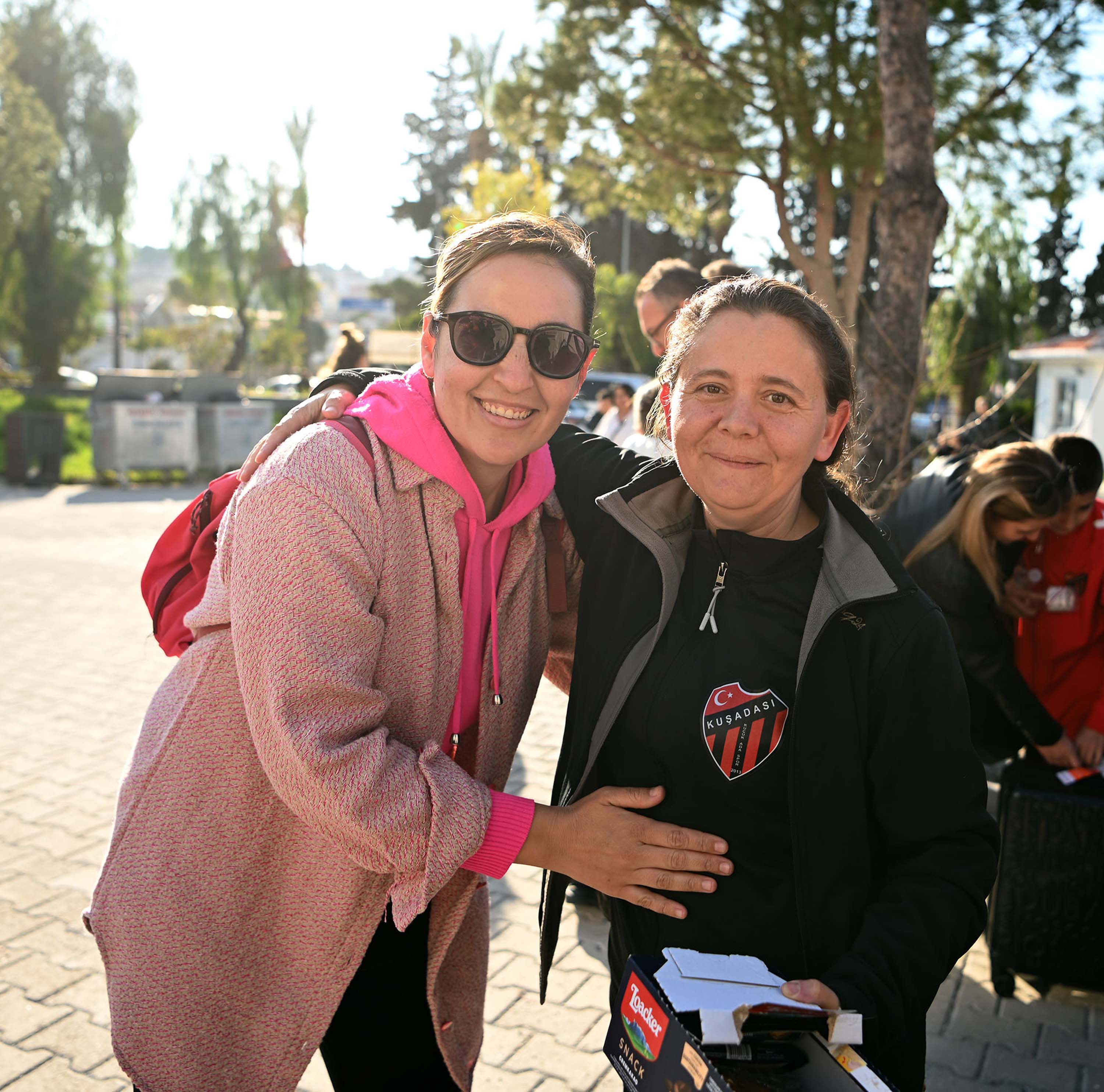 Çocuklarına sarılan anne ve babalar kafilenin sağ salim Kuşadası’na gelmesine yardımcı olan yetkililere teşekkür etti.