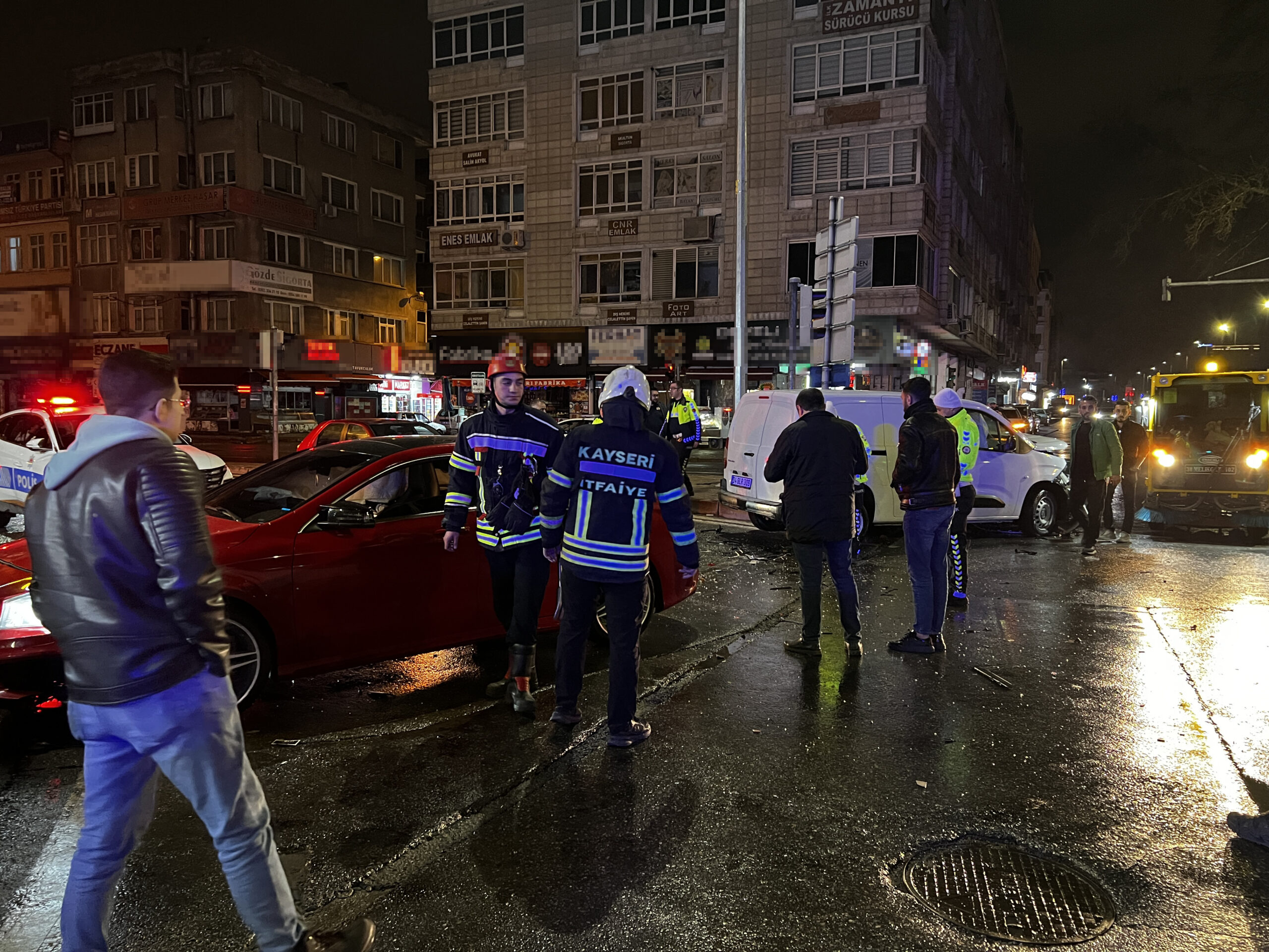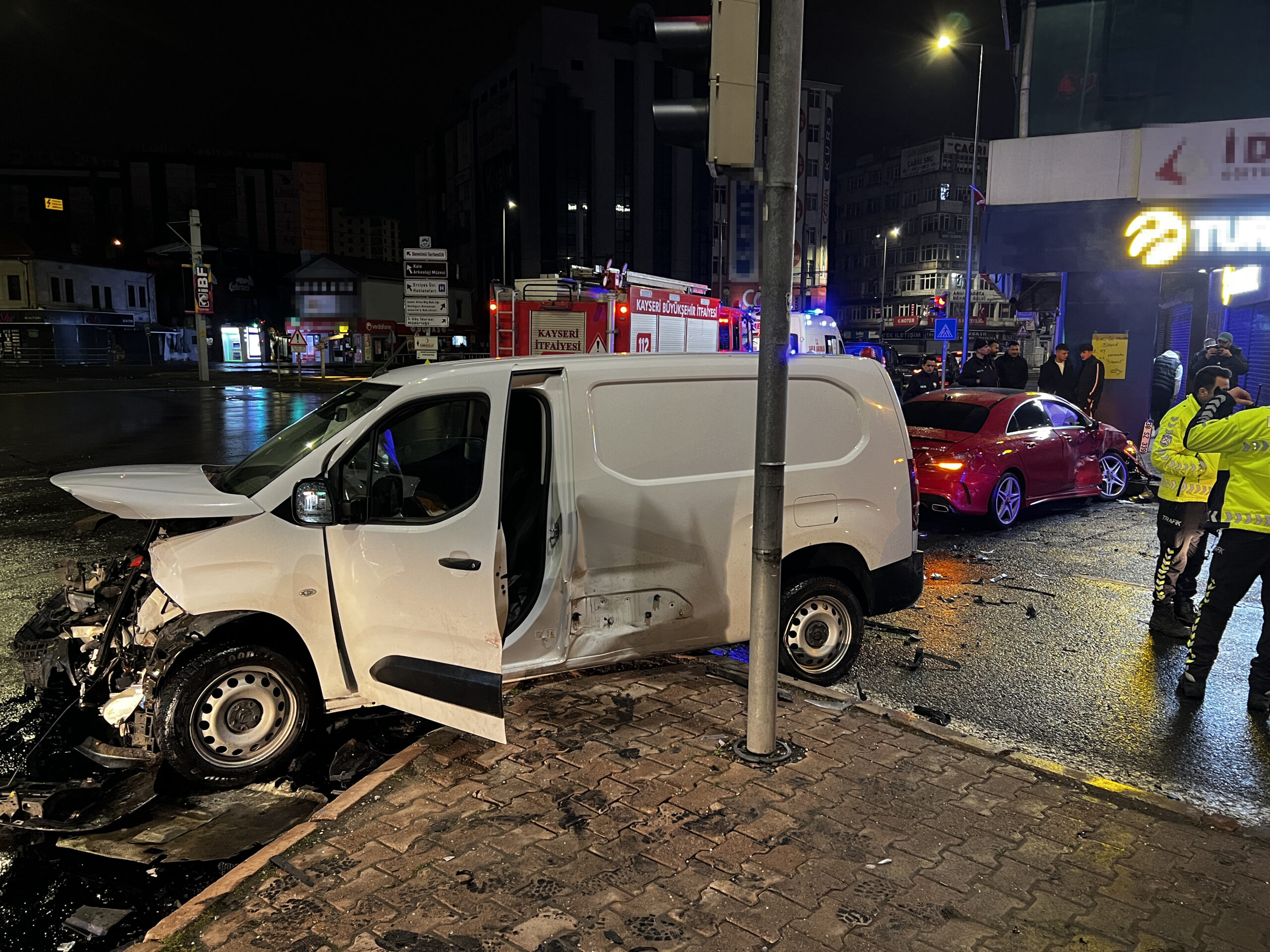 Kaza, saat 02.00 sıralarında Kocasinan ilçesi Hacı Saki Mahallesi Atatürk Bulvarı’nda meydana geldi. S.K. yönetimindeki 38 Sz 339 plakalı otomobil ile A.Ö. idaresindeki 34 Glr 309 plakalı hafif ticari araç çarpıştı. Kazada her iki aracın sürücüsü yaralandı. İhbar üzerine kaza yerine, polis, sağlık ve itfaiye ekipleri sevk edildi.