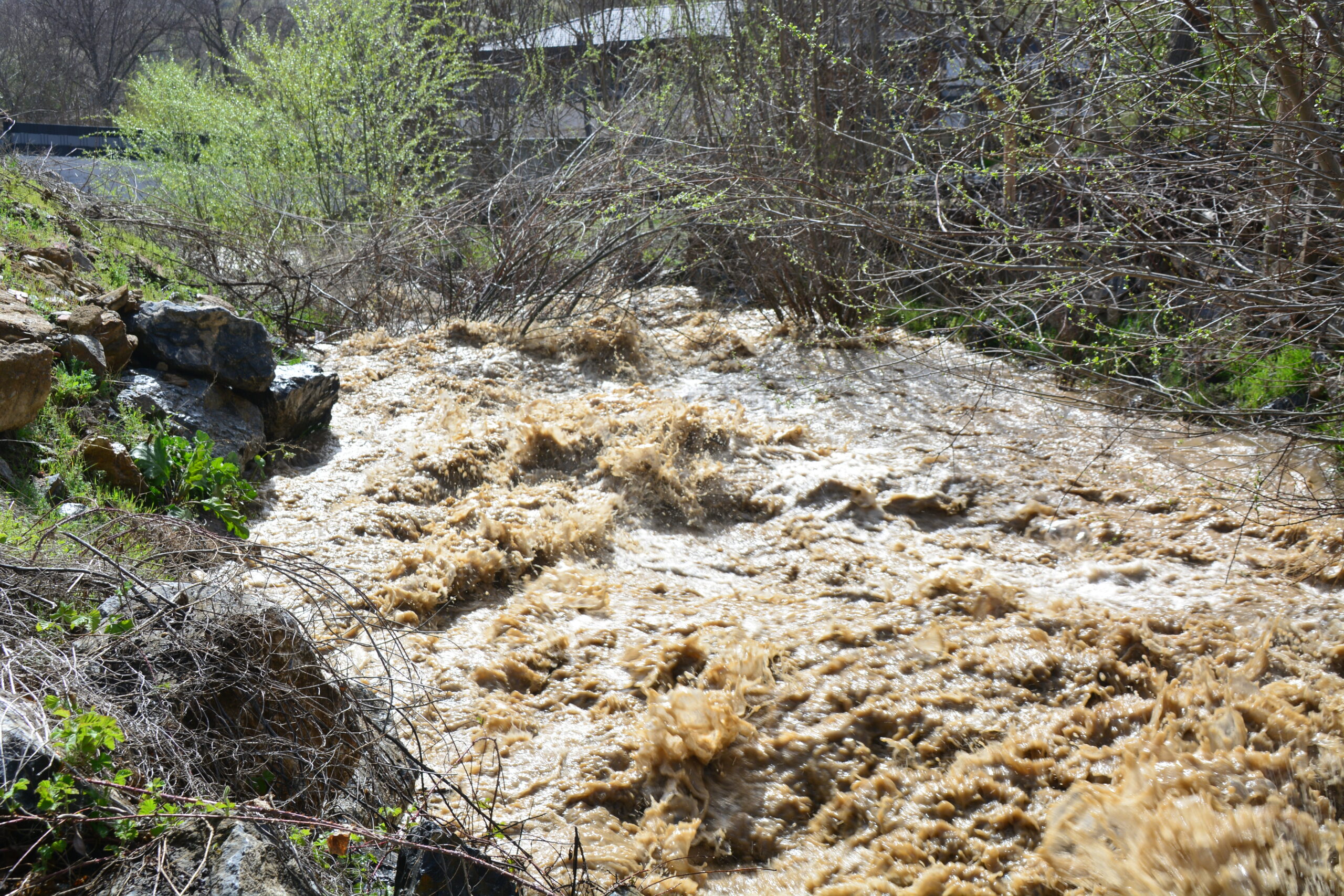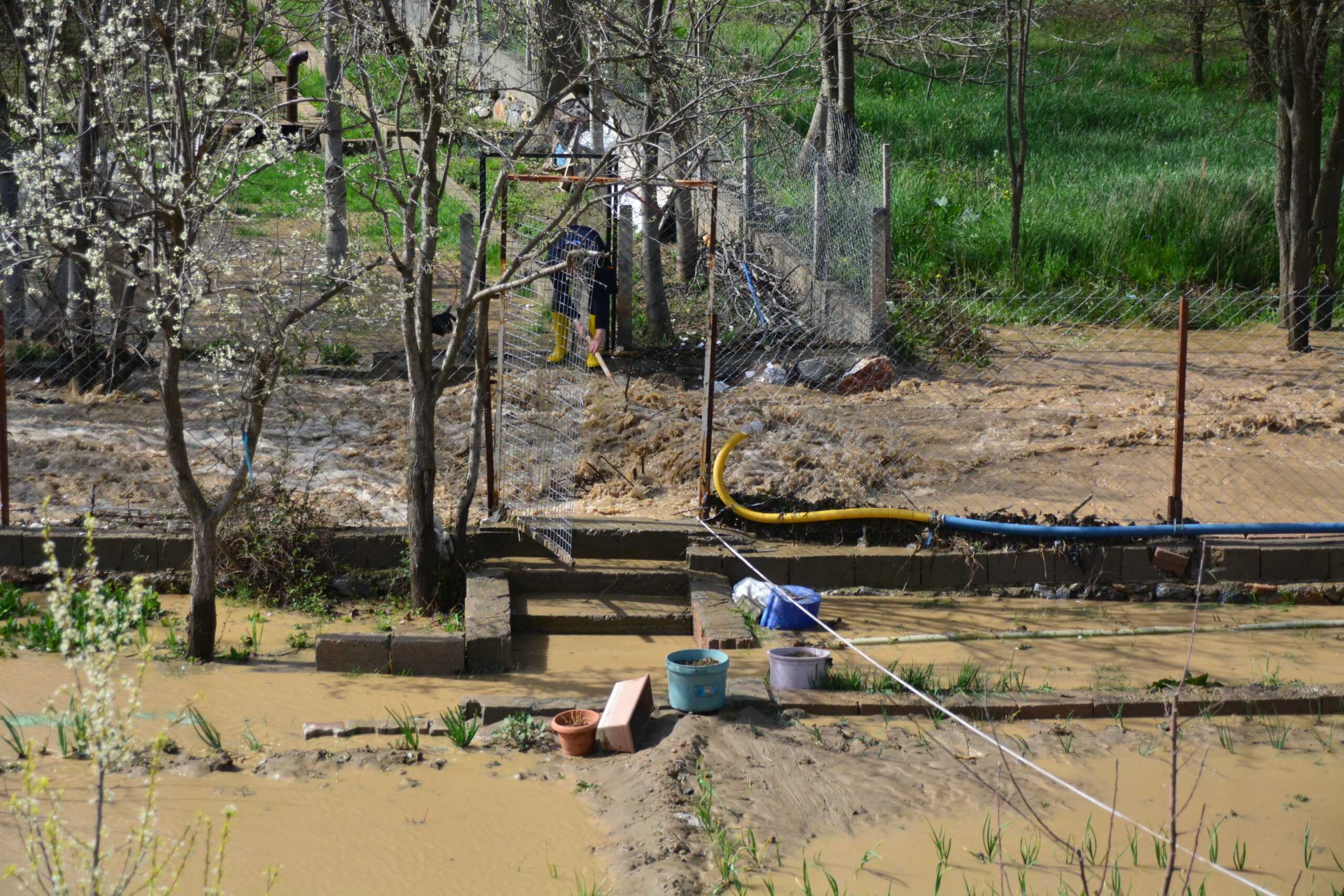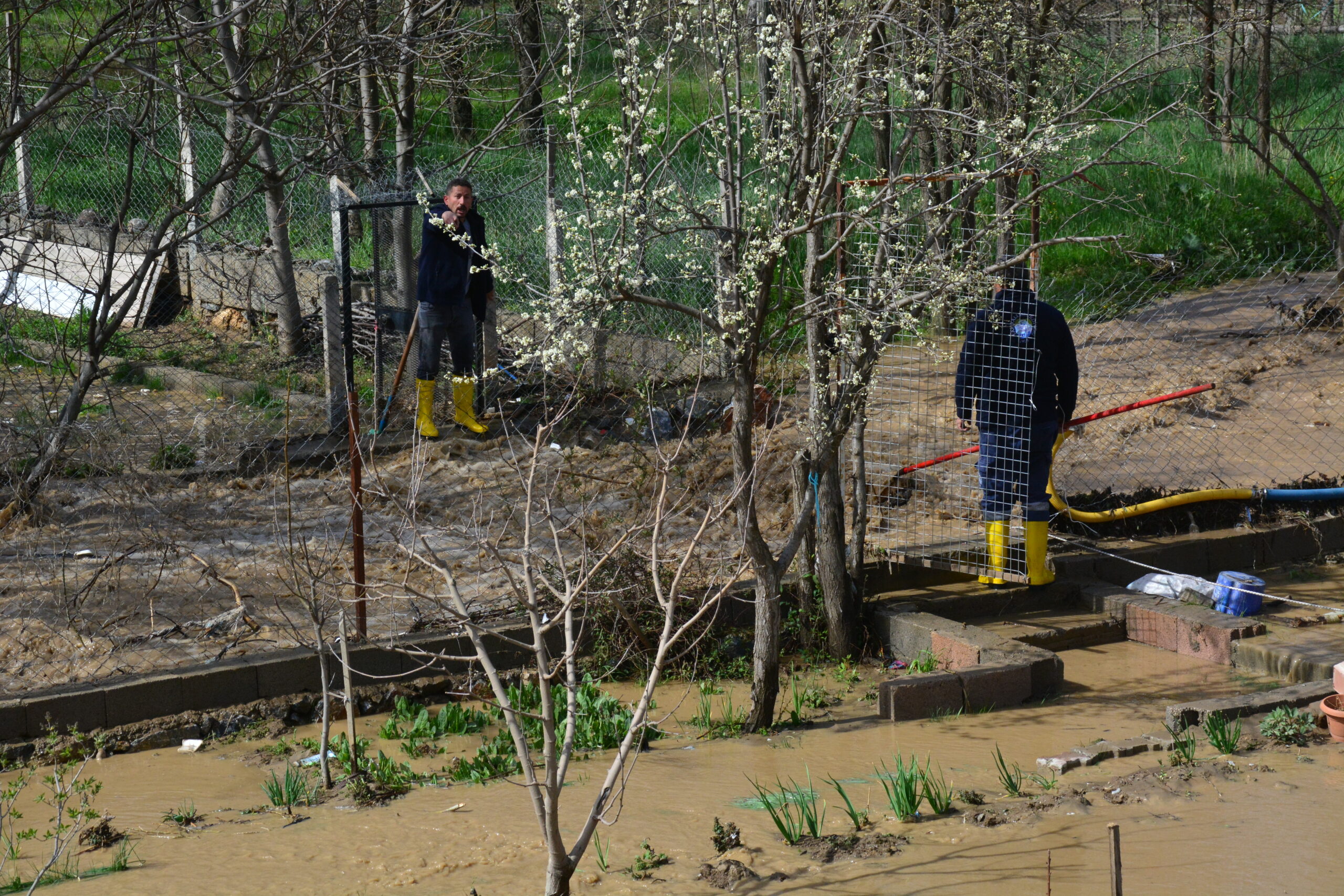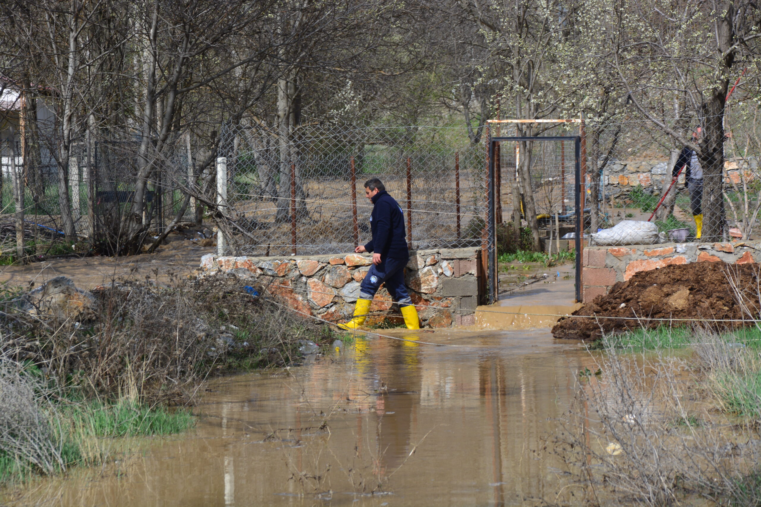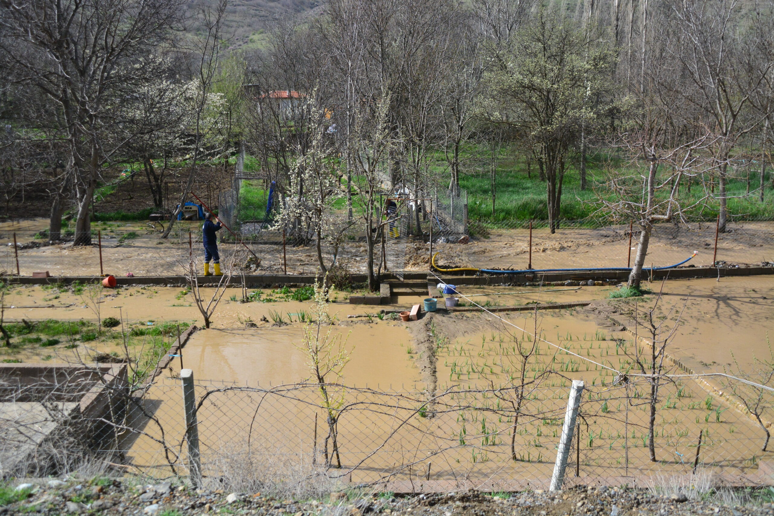 Kayseri’nin Yahyalı ilçesinde sabah saatlerinde etkili olan sağanak sonrası oluşan selde tarım arazilerini su bastı.