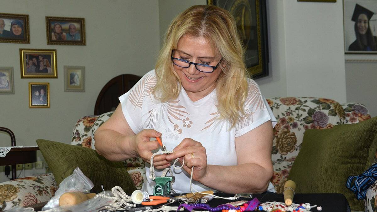 Adana’da evli ve 2 çocuk annesi Sonay Gök evinde, Osmanlı padişahlarının kaftanlarını süsleyen kazaziye ve kaytan sanatlarını kullanarak çeşitli takılar ile tespih üretip Avrupa ülkelerine gönderiyor.