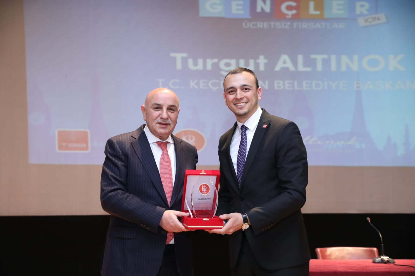 Başkan Altınok seminerin sonunda Türkiye Belediyeler Birliği uzmanı Oğuzhan Gürsoy’a plaket takdim etti.