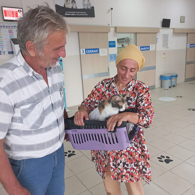 Rize’de Esin Bayrak, otomobil çarpmasıyla yaralanan kedisinin ameliyatı için 1700 kilometre katetti. Bayrak, “Gidiş gelişlerle beraber yaklaşık 1700 kilometrelik yolculuk oldu ama ‘Duman’ın durumu çok şükür gayet iyi” dedi.