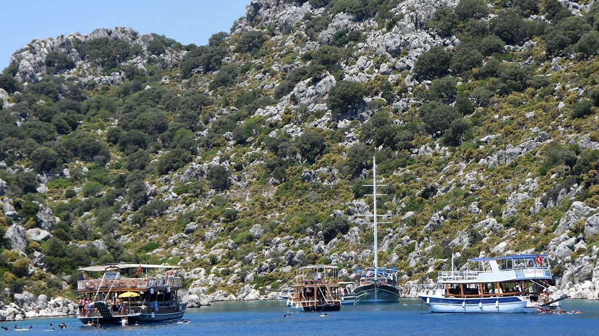 Antalya’nın Kekova tatil yeri bu sene beklenilen yoğunluğa ulaştı; Ruslar yat turlarına çıktı