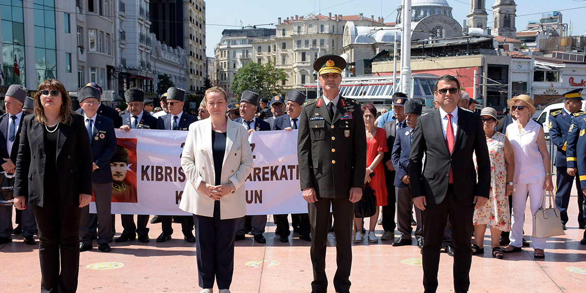 20 Temmuz 1974 tarihinde gerçekleştirilen Kıbrıs Barış Harekatı’nın 49’uncu yıl dönümü, Taksim Cumhuriyet Anıtı’nda düzenlenen törenle kutlandı. Törene, KKTC İstanbul Başkonsolosu Seniha Birand Çınar, Vali Yardımcısı Özlem Bozkurt Gevrek, 1’inci Ordu Komutanlığı temsilcisi Tuğgeneral Nurettin Hakan Büyükçulha, Dışişleri Bakanlığı İstanbul temsilcisi, İstanbul Büyükşehir Belediye Başkanlığı temsilcisi, Kıbrıs Harekatı gazileri ile Sivil Toplum Kuruluşları (STK) üyeleri katıldı.