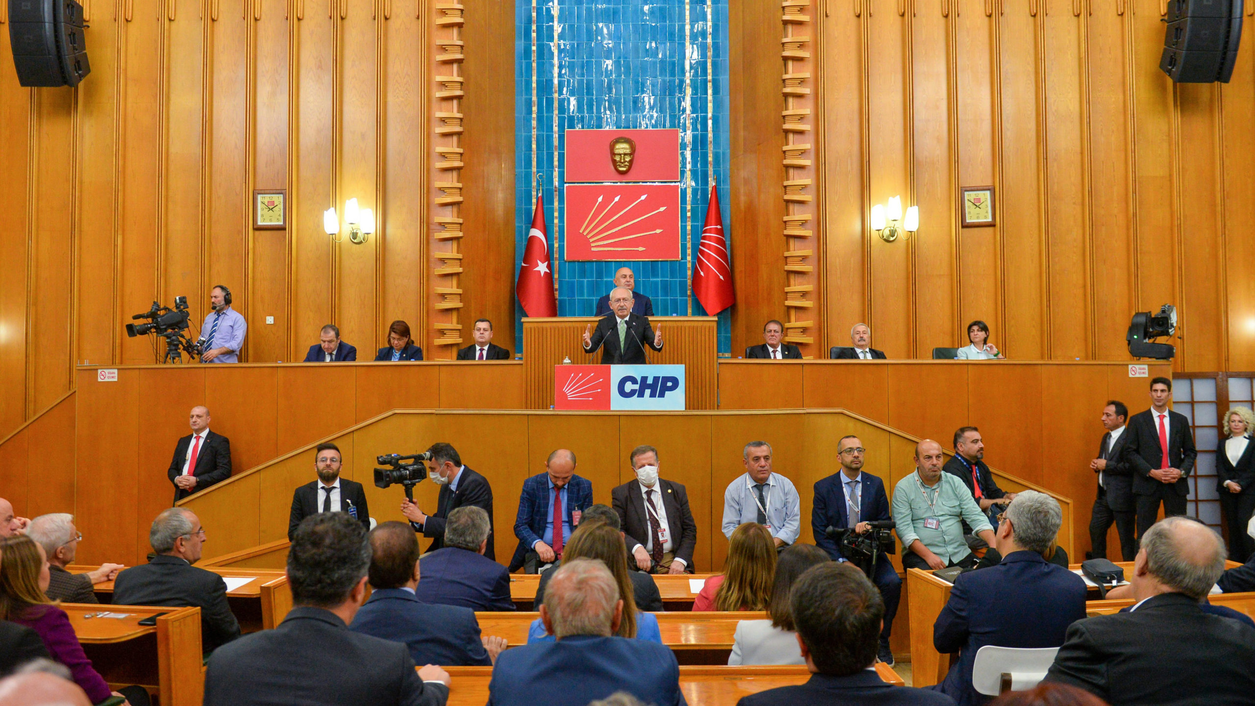 CHP Genel Başkanı Kemal Kılıçdaroğlu, TBMM’de partisinin grup toplantısında konuştu. Kılıçdaroğlu, her evde huzur olması için mücadele eden bir parti olduklarını belirterek, “Kavga değil huzur istiyoruz. Bizim hedefimiz bu. Kimlik üzerinden siyaset yapmayacağız, inanç üzerinden siyaset yapmayacağız, yaşam tarzı üzerinden siyaset yapmayacağız. Herkesi kucaklayacağız. Hiçbir ayrımcılık yapmadan 85 milyonu kucaklayacağız” diye konuştu.
