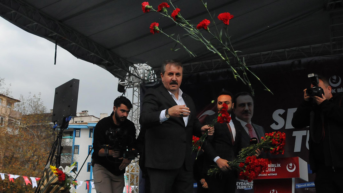 BBP Genel Başkanı Mustafa Destici, partisinin İzmit Kent Meydanı’nda düzenlediği mitinge katıldı. Helikopter kazasında hayatını kaybeden partinin kurucu lideri Muhsin Yazıcıoğlu’nun fotoğrafları ve sözlerinin asıldığı alandaki mitinge partiyi destekleyen yüzlerce vatandaş katıldı.