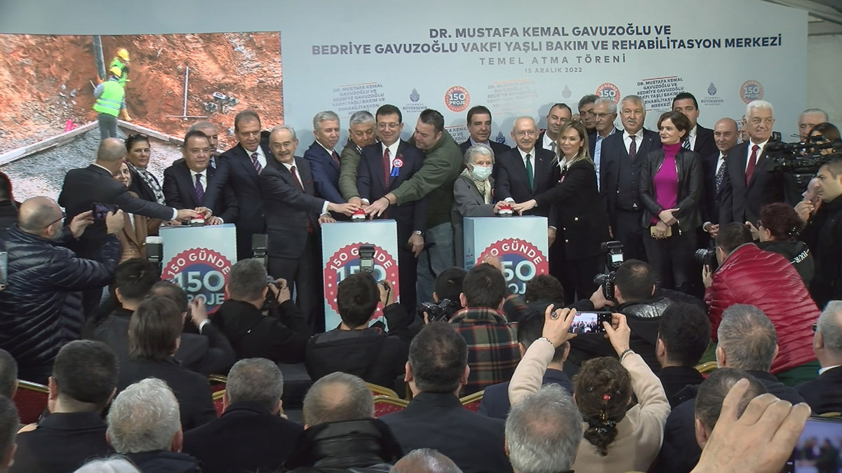 CHP Genel Başkanı Kemal Kılıçdaroğlu ve İBB Başkanı Ekrem İmamoğlu, Eyüpsultan’da, Dr. Mustafa Kemal Gavuzoğlu ve Bedriye Gavuzoğlu Vakfı Yaşlı Bakım ve Rehabilitasyon Merkezi Temel Atma Töreni’ne katıldı. Kılıçdaroğlu ve İmamoğlu’nun yanı sıra CHP İstanbul İl Başkanı Canan Kaftancıoğlu, CHP’li 10 büyükşehir belediye başkanları, ilçe belediye başkanları, milletvekilleri, parti temsilcileri ve davetliler katıldı. İmamoğlu, konuşma öncesinde saha gezisi yapıp, bilgi aldı.