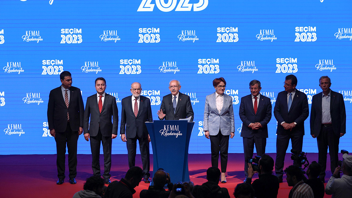 CHP Genel Başkanı Kemal Kılıçdaroğlu, İYİ Parti Genel Başkanı Meral Akşener, DEVA Partisi Genel Başkanı Ali Babacan, Demokrat Parti Genel Başkanı Gültekin Uysal, Saadet Partisi Genel Başkanı Temel Karamollaoğlu ve Gelecek Partisi Genel Başkanı Ahmet Davutoğlu ile birlikte CHP Genel Merkezi’nde kamera karşısına geçerek açıklama yaptı. Kılıçdaroğlu, sandığa gelip oy kullanan seçmenlere teşekkür etti.