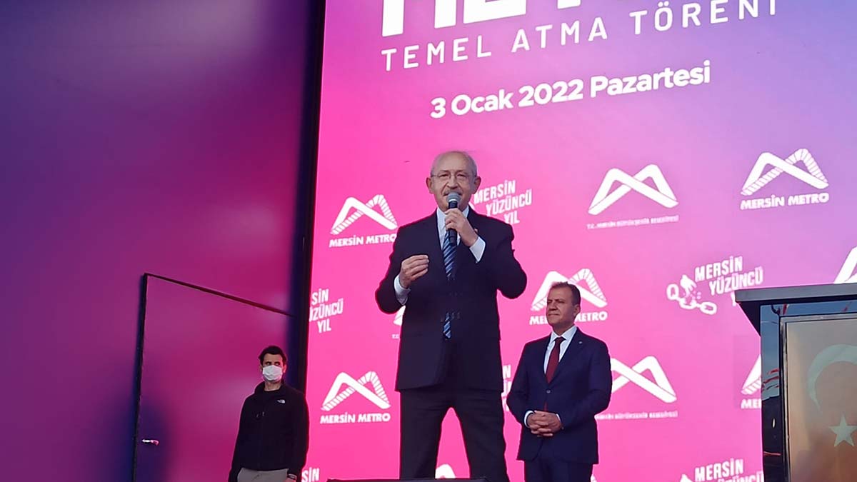 Akşener’in ardından kürsüye çıkan CHP Genel Başkanı Kemal Kılıçdaroğlu ise daha önce bu meydanda miting yapmalarına izin verilmediğini belirterek, “Demek ki dolabiliyor, demek ki halk seçim istiyor, demek ki halk dönüşüm istiyor. Demek ki halk adalet istiyor. Hak istiyor, hukuk istiyor. Sayın Akşener, Türkiye’nin bugün yaşadığı tabloyu gayet güzel açıkladı. 5 maaş alanlardan tutun sınavlardaki haksızlara değindi. Evlerde tencerenin kaynamadığını, büyük sorunların olduğunu ifade etti. Sizden sadece bir isteğim var, sakın ola ki umutsuzluğa kapılmayın. Bugün Mersin’in kurtuluşunun 100’üncü yılı. Bugün çok önemli bir şey yapıyoruz.