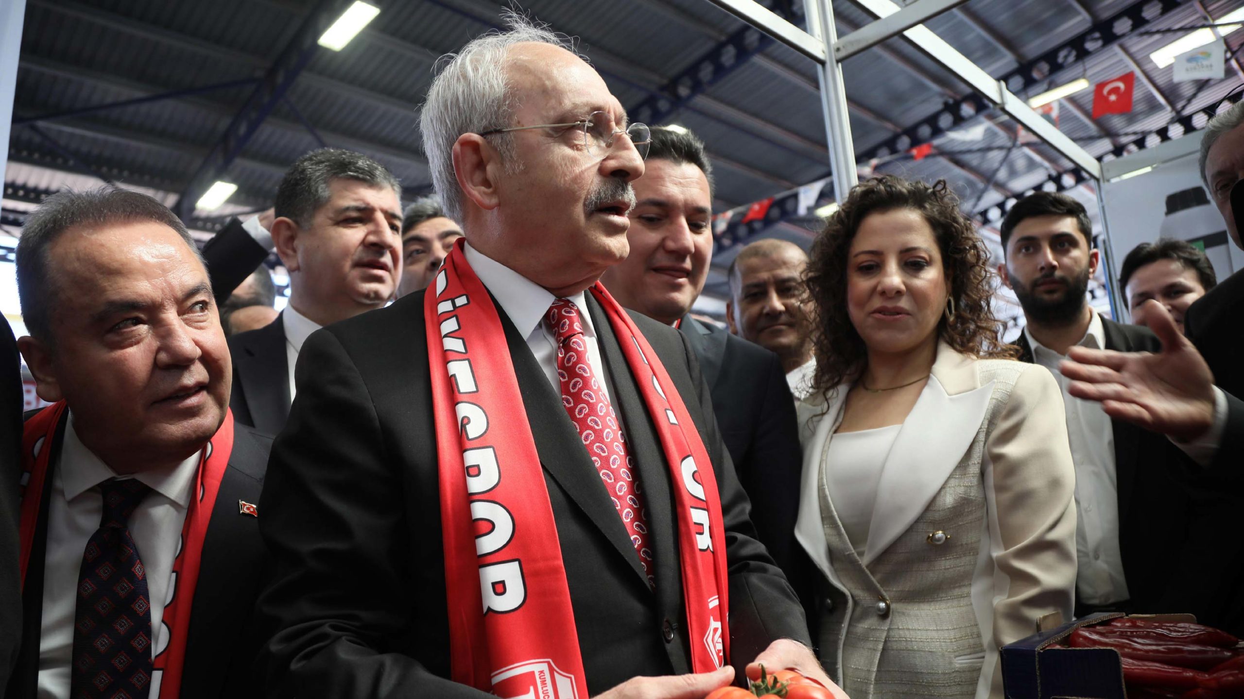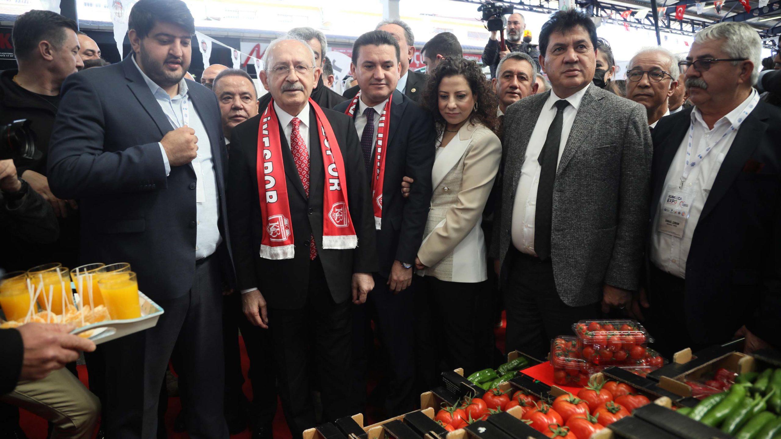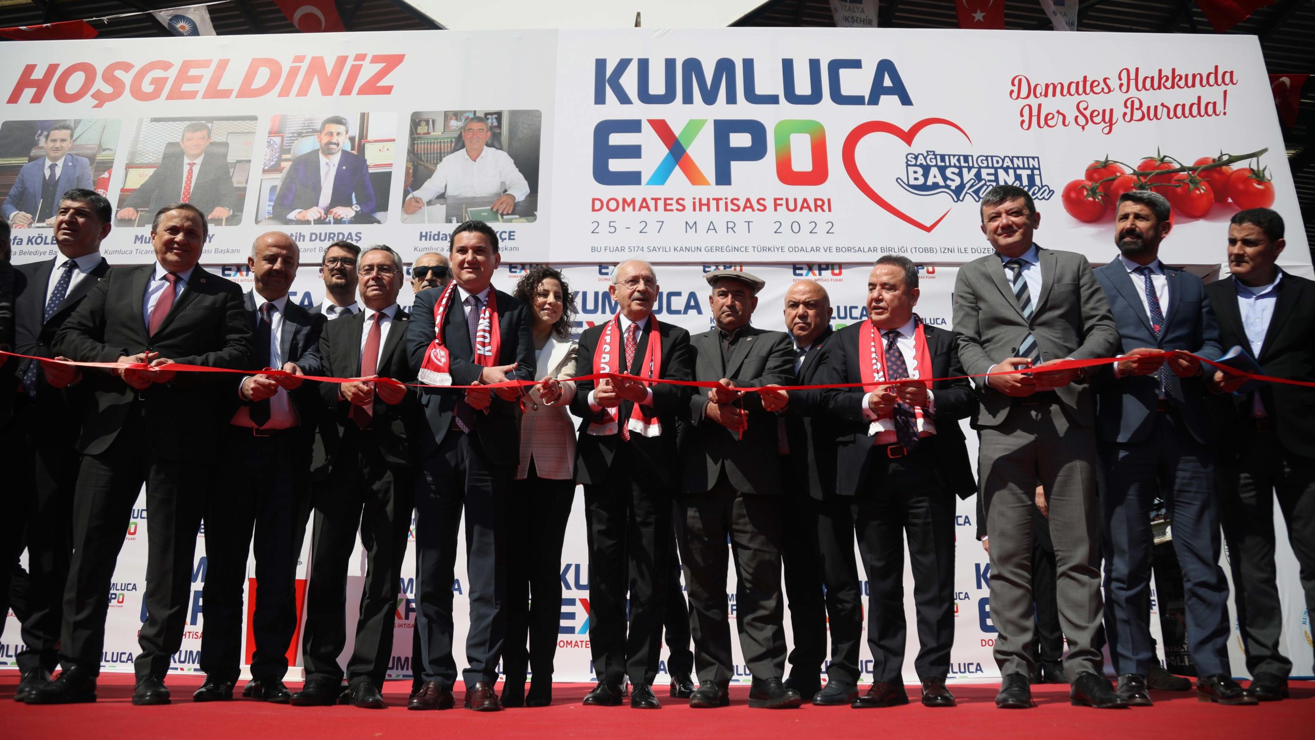 CHP Lideri Kemal Kılıçdaroğlu, Antalya’nın Kumluca ilçesinde Kumluca Belediyesi, Kumluca Ticaret ve Sanayi Odası, Kumluca Ticaret Borsası ve Ziraat Odası’nın düzenlediği Domates İhtisas Fuarı’nın (DomatExpo) açılışına katıldı. Kılıçdaroğlu’na genel başkan yardımcıları, CHP ve İYİ Parti’nin Antalya milletvekilleri, Antalya Büyükşehir Belediye Başkanı Muhittin Böcek, Kumluca Belediye Başkanı Mustafa Köleoğlu, diğer ilçe belediye başkanları ve çok sayıda davetli eşlik etti.