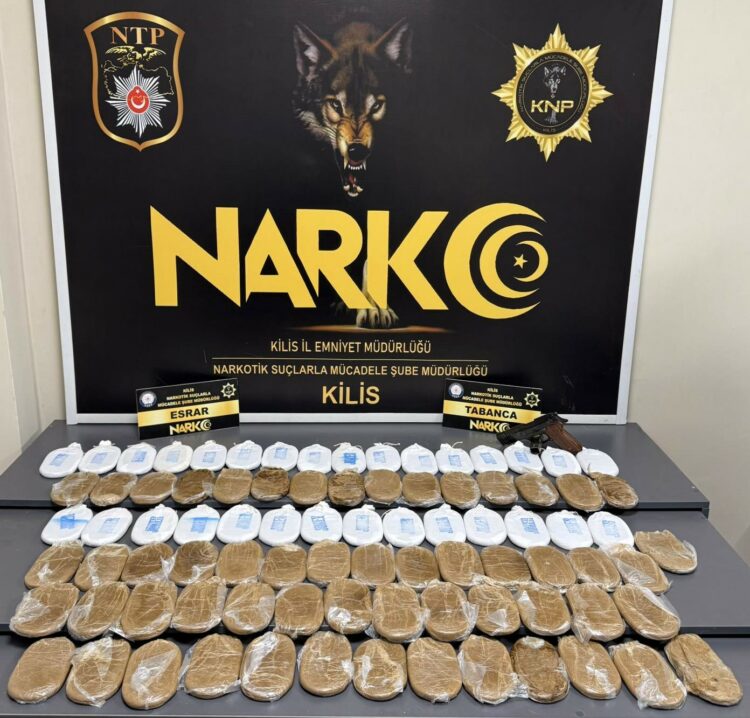 Kilis Cumhuriyet Başsavcılığı koordinesinde; İl Emniyet Müdürlüğü Narkotik Suçlarla Mücadele, İstihbarat, Terörle Mücadele ve Asayiş Şube müdürlükleri ortaklığında operasyon gerçekleştirildi. Seve Barajı civarında durdurulan araçtaki şüpheli D.K.’nin üzerinde ve otomobilinde 16 kilo 684 gram takoz esrar maddesi ele geçirildi. Şüphelinin bağlantılı olduğu değerlendirilen 4 farklı adresteki eş zamanlı aramada da 421 gram takoz esrar maddesi ile 1 ruhsatsız tabancaya ulaşıldı. Hakkında, ‘Uyuşturucu veya uyarıcı madde ticareti yapmak’ suçundan işlem yapılan D.K., sevk edildiği adliyede çıkarıldığı mahkemede tutuklandı.