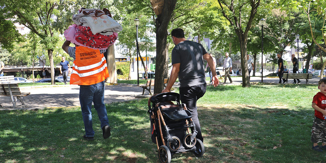 Eşinin maddi durumu olmadığı için geçimlerini zor sağladığını belirten Hediye Oynar, “Ben bir depo kiraladım, eşyalarımı içine koydum. Kiraladığım deponun sahibi geçici olarak 2 aylığına bize kiraya vermişti. 6 aydır içinde kaldık. Ev sahibinin oğlunun düğünü vardı diye, bizi mecburiyetten çıkarmak zorunda kaldı. Biz de depodan mecburiyetten çıktık, kalacak yer bulamadık. Kiralar 10 bin, 15 bin TL’yi buldu. Ev bulamadık, mecburiyetten parka geldik. Eşim şu an ev arıyor, naylon ve karton topluyor. Sakat ve durumumuz yok. Şu an hasta ve bu şekilde gidip uygun bir ev arıyor.