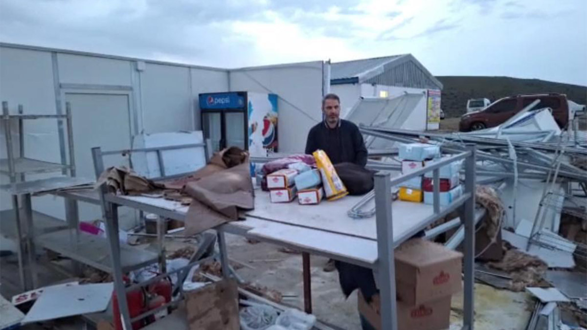 Kırıkkale’de kuvvetli rüzgarda TOKİ şantiyesinin yemekhanesi yıkıldı, bazı binaların çatılarındaki kiremitler etrafa savruldu.