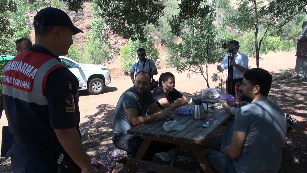 İl Jandarma Komutanlığı ekipleri, dronlarla havadan denetim yaparak kontrollerini sürdürdü. Ekipler, kent ormanındaki mesire alanında piknik yapanları da araçlardaki megafonlarla orman yangınlarına karşı dikkatli olmaları konusunda uyardı.