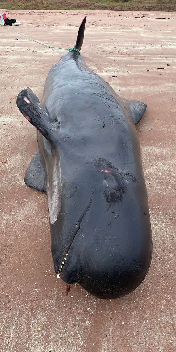 BDMLR, dün sabah saatlerinde Orkney Adası’nda deniz kıyısında görülen 77 yüzgeçli pilot balinasının toplu olarak kıyıya vurduğuna dair ihbar aldığını ifade etti.