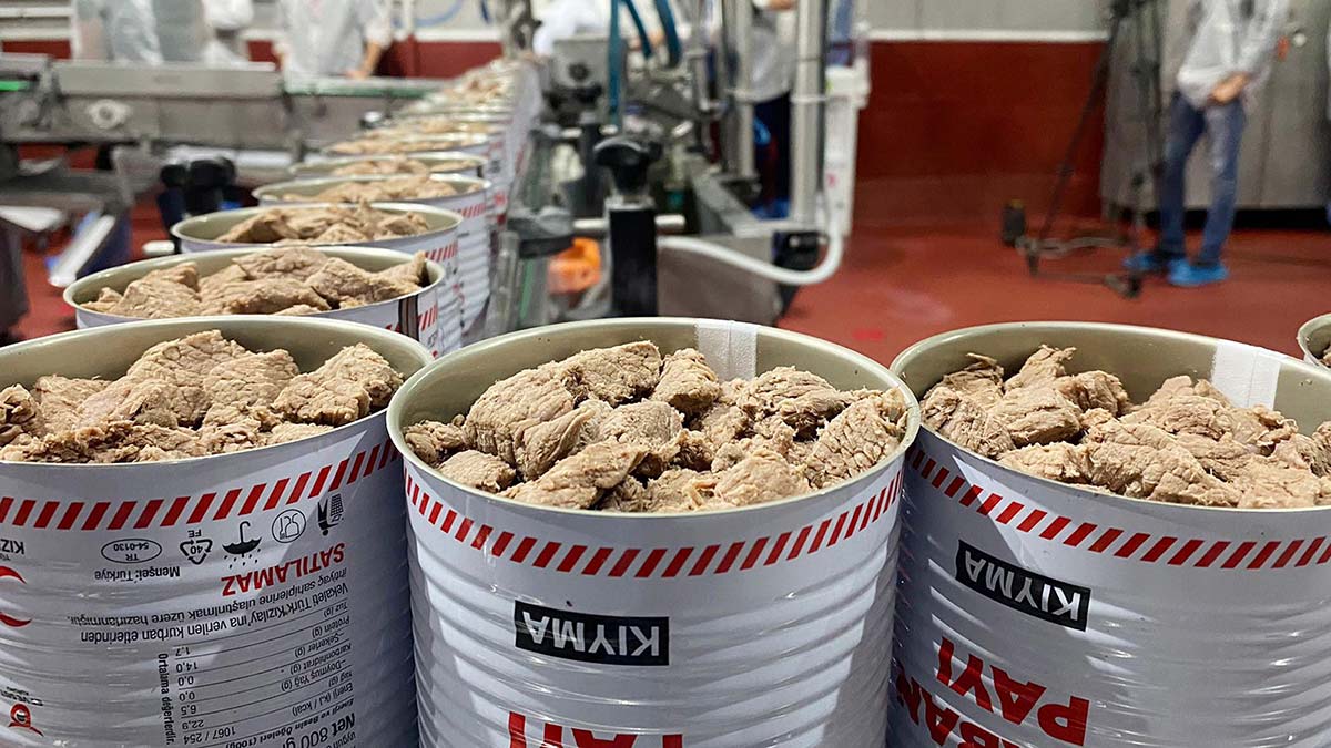 Bu ayrım sırasında etlerin bir kısmı kıyma bir kısmı da parça et olmak üzere ayrılıyor. Kaynama kazanlarında bir ön haşlama, kutulara doldurma işlemi gerçekleşiyor. Her biri 800 gramlık paketlerle standart şekilde ayarlanıyor. Bir pakette yüzde 70 et, yüzde 20 et suyu ve yüzde 10 yağ olmak üzere standart şekilde hazırlanıyor. Kapaklar kapatıldıktan sonra yüksek ısıda stabilize ediliyor. Bu işlem konservelerin 2,5 sene raf ömrüne sahip olmasını sağlıyor. Sene boyunca afet durumunda veya ihtiyaç sahiplerine ulaşmamızı sağlıyor” diye konuştu.