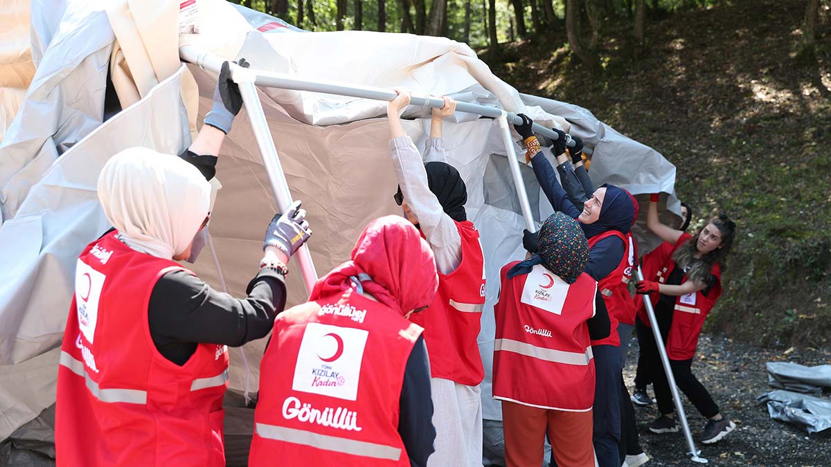 Eğitim çalışmalarıyla afet gönüllüleri yetiştiren Kızılay, kadın gönüllülerine de bölge bölge oluşturulan “Kızılay Kadın Afet Gönüllüsü Yetiştirme Kampı” çalışmalarıyla Kızılay afet uzmanlarından afete müdahale eğitimini uygulamalı olarak veriyor.