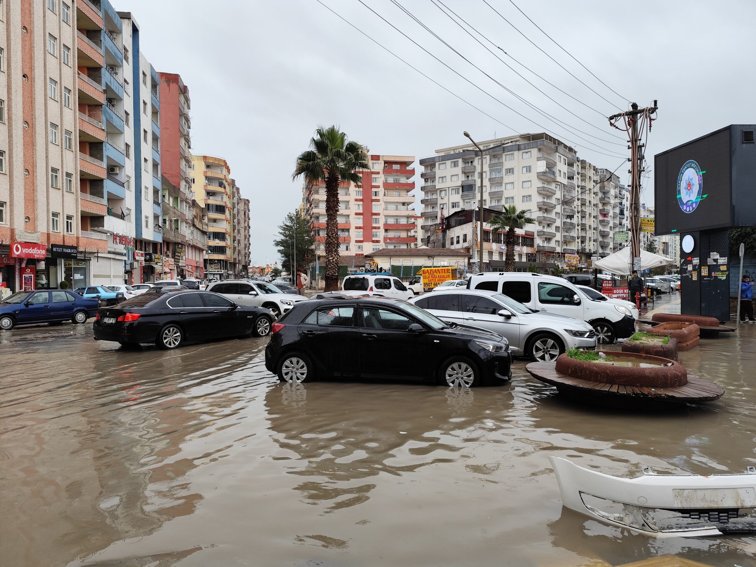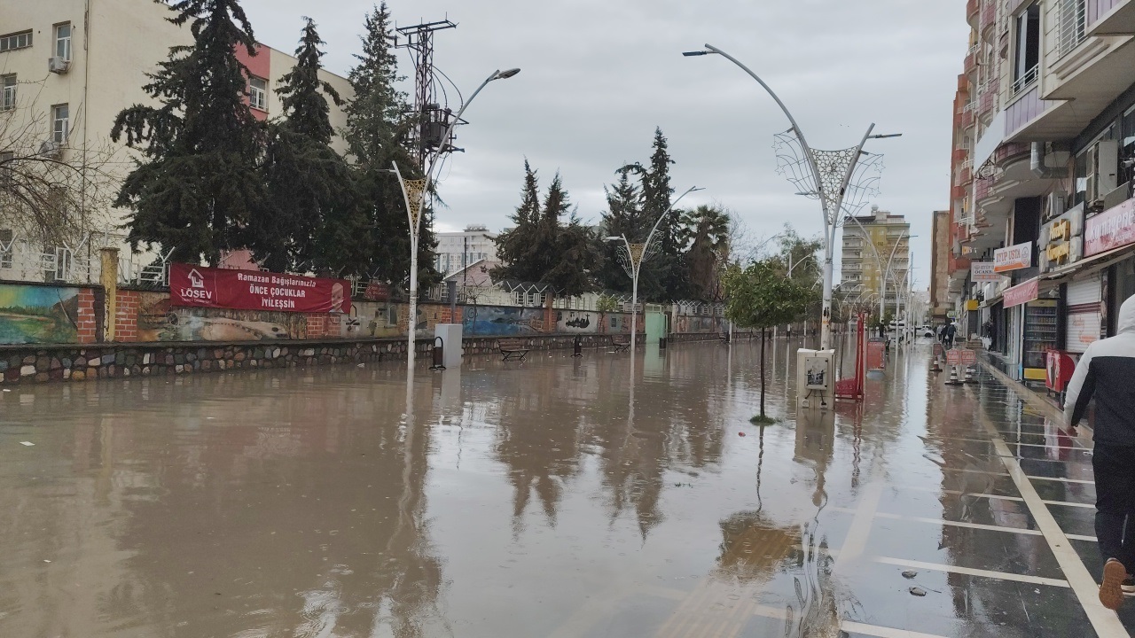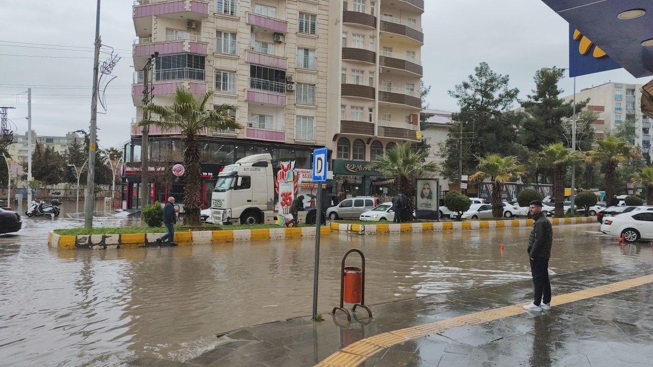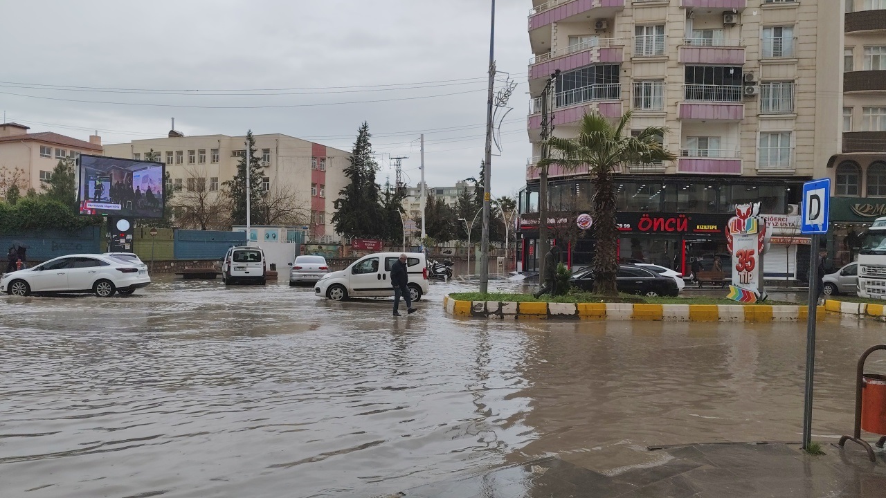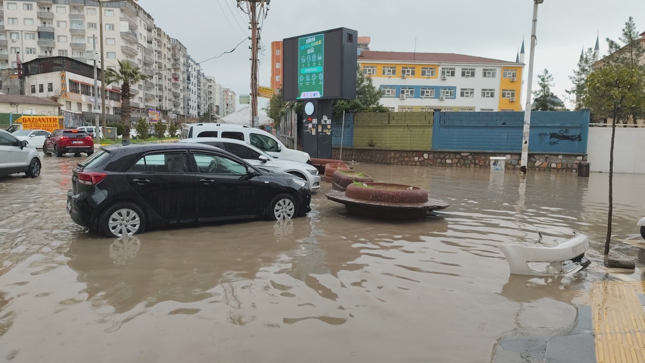 Mardin’in Kızıltepe ilçesinde etkili olan sağanak nedeniyle cadde ve sokaklar göle döndü, araçlar ve yayalar ilerlemekte güçlük çekti.