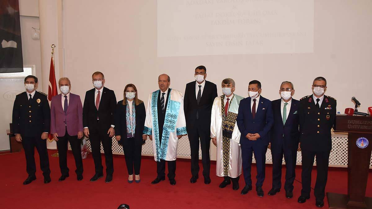 Kütahya’da Dumlupınar Üniversitesi’nde, Kuzey Kıbrıs Türk Cumhuriyeti (KKTC) Cumhurbaşkanı Ersin Tatar’a ‘fahri doktora’ unvanı verildi