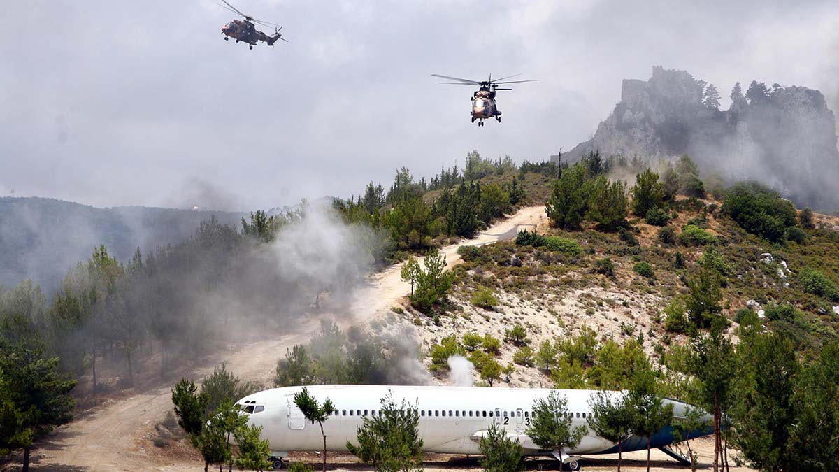 KKTC’de arama-kurtarma tatbikatı nefes kesti. KKTC Cumhurbaşkanı Ersin Tatar’ın da izlediği tatbikatta senaryo gereği dağlık alana düşen helikopterdeki yaralılar kurtarıldı.