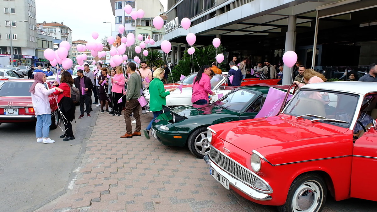 Klasik Otomobil Kulübü Genel Sekreteri Yeliz Balıbey de “Etkinlik üyelerimizin ilgisini çekti ve yaklaşık 25 arabayla bir konvoy oluşturduk. Araçlarımızı pembe balonlarımızla süsleyerek ve bu konudaki duyarlılığımızı göstermeye çalıştık. Eskiden kanser tedavi süreçleri daha kendi içine dönük, söz edilmeyen süreçleri kapsıyordu. Artık, tedavide umutsuzluk azaldı; teknoloji gelişti, güzel sonuçlar elde ediliyor. Dolayısıyla bizler bu haftaya pembe çerçevelerden bakmak istiyor ve herkesi duyarlılığa davet ediyoruz” ifadelerini kullandı.