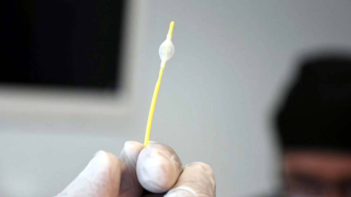 Biz bu hücrelere goblet hücreleri, diyoruz. KOAH hastalarında da bu hücreler daha fazla artıyor ve bol miktarda balgam üretiyor. Akciğer içinde balgam üretildiği zaman sanki havuzda, denizde boğulmuş gibi kişi, nefes alıp veremiyor çünkü akciğerinizin içerisi su dolu. Bizim yaptığımız işlem, bu hastadaki gibi akciğere bronkoskopi dediğimiz bir video kamera aracılığıyla giriyoruz. Bronkoskopun içerisinden de bir balon geçiriyoruz. Bu balonun özelliği, dakikada 30 kere inip şişebilen bir balon. Ucunda inip şişebilen bir balon var. Bu balonun aynı zamanda hafif oranda da kesici özelliği var.