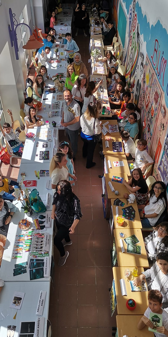 Okulun bahçesinde ve içerisinde yapılan etkinlikte, ortaokulda eğitim gören 450 minik yazarın yazdığı eserler velilerden de büyük beğeni topladı. Minik yazarlardan Beril Elif Ertüzün kitabını tanıtırken, “Benim kitabımda, bir kızın telefon bağımlılığı hakkında bir kitap” derken, Ömer Başol ise, “Okul gezisine giden Bremen’in, okul gezisinde hayallere dalıp bir kahraman oluşunu anlattım rüyasında.