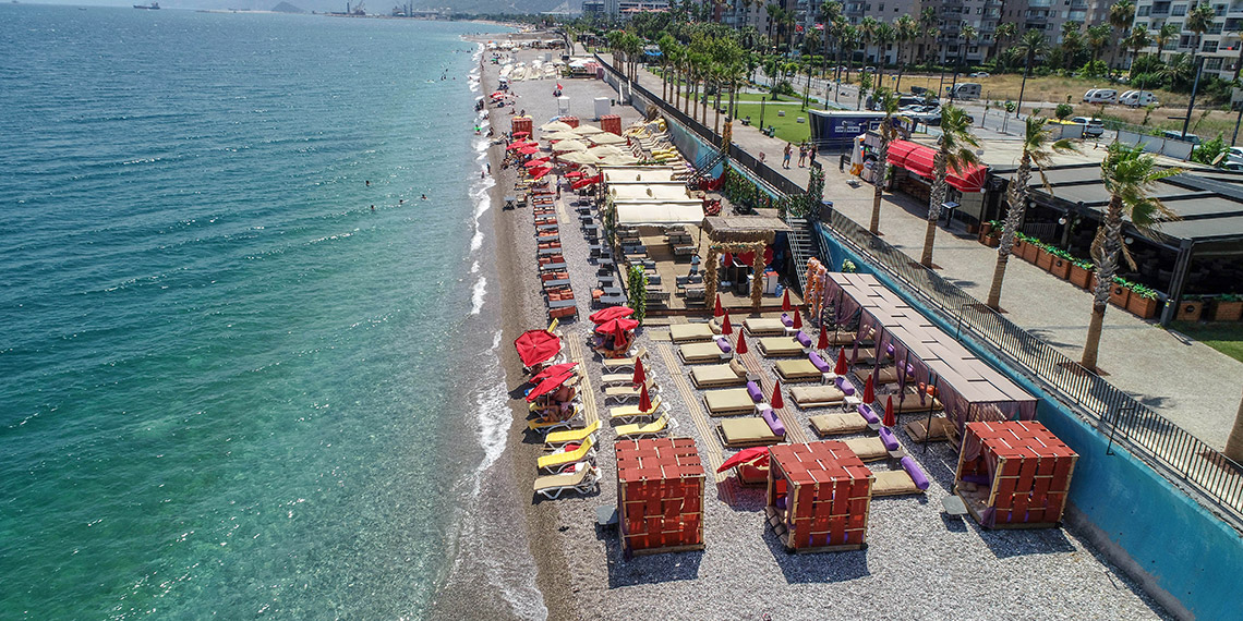 Antalya’nın dünyaca ünlü Konyaaltı Sahili’ndeki işletmeler, gürültü ve çevre kirliliği, sahilin halka açık bölümlerinin işgali gibi nedenlerle şikayetlerin odağı haline geldi. İşletmeler kumsalda şezlong-şemsiye alanı dışında, yasak olmasına rağmen ‘pavilyon’ olarak tabir edilen özel localar ve barlar oluşturdu.