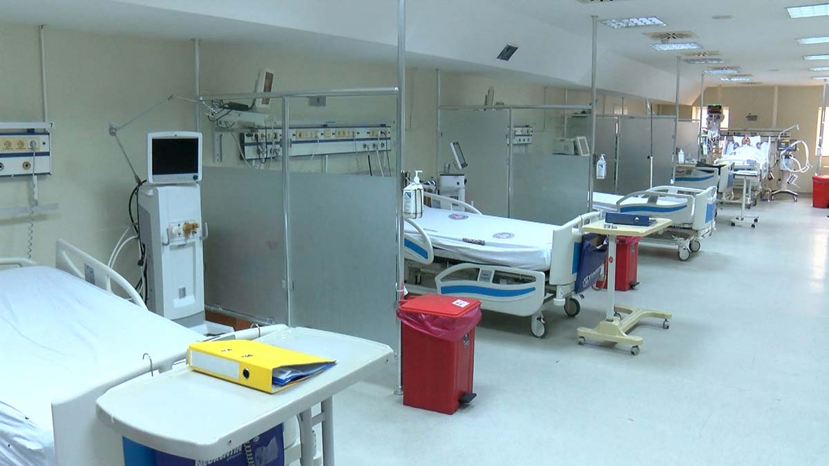 Biz de diğer hastanelerde olduğu gibi bir bölümümüzü Kovid dışı hastalara, bir bölümü de Kovid hastalarına ayırmıştık. Kovid dışı yoğun bakımımız yüzde 100 oranında doluluğa ulaştı. İhtiyacı olan hastalarımızı normal yoğun bakıma alabilmek için de Kovid azalmasından da yararlanarak tekrar bu ünitemizi de normal yoğun bakıma çeviriyoruz. Şu anda bu boş gördüğünüz yataklar, bugün itibarıyla diğer hastalarla dolacak. Şu anda (ameliyat için) sırada bekleyen 8 hastamız, biraz sonra bu yataklara gelmiş olacak. Kovid için ise daha küçük bir yoğun bakım ünitesini aktif tutacağız. Hastalar oldukça, orada bakmaya devam edeceğiz.