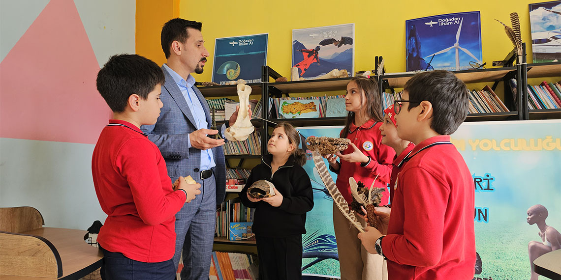 Samet Terzi, müze ile öğrencilere milli ve manevi değerlerin yanı sıra teknolojik gelişmeleri, bilimsel süreçleri yaşatarak öğretmeyi amaçladığını söyledi. Müzede dokuma halı ve eski Türkiye haritasından tarımda kullanılan ahşap aletlere, yöresel giysilerden köyün ilk seçim sandığı ve kömürlü ütüye, bitki fosilinden ateşin temeli olan magnezyum taşlarına kadar birçok eser yer alıyor. Ayrıca, ‘doğadan öğren’ fikrinden esinlenilerek, motosiklet kaskına benzer kaplumbağa kabuğu, Eyfel Kulesi’nin mimarisini andıran bir hayvana ait uyluk kemiği de bulunuyor.