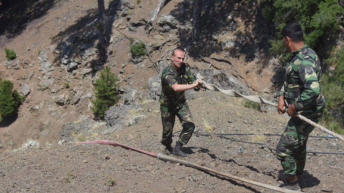 Öte yandan dün akşam bölgeye, Azerbaycan ekibi de geldi. Azerbaycan Fevkalade Hariciye Nazırlığı’na bağlı 710 arama kurtarma ve itfaiye ekibi, 93 itfaiye aracı ve 1 helikopter yangına müdahale ediyor. Alevlerin vadide olmasından dolayı arazözler ve iş makineleriyle yeni yolların açılmasına da devam ediliyor.