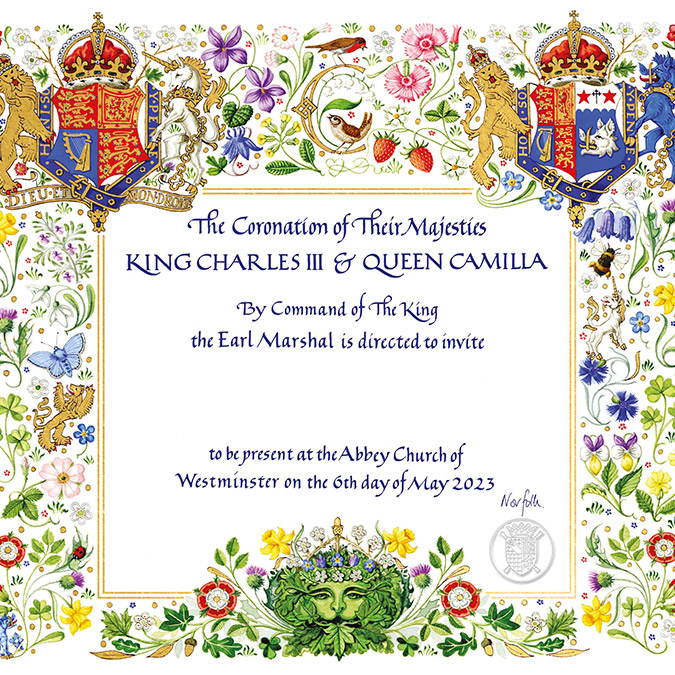 Ülkedeki çayırlarda yetişen çiçeklerle bezeli davetiyede ayrıca Kral 3. Charles’ın eşi olduğu için ‘Kraliçe Eş’ (consort) unvanı taşıyan Camilla’nın sadece ‘Kraliçe’ unvanı ile yazıldığı dikkat çekti. Kraliyet arşivlerinden en eski taç giyme davetiyesinin fotoğrafı da paylaşılarak “Kraliyet Arşivlerindeki en eski taç giyme töreni davetiyesi, 22 Eylül 1761’de gerçekleşen Kral George III ve Kraliçe Charlotte’un taç giyme töreni içindir” denildi.