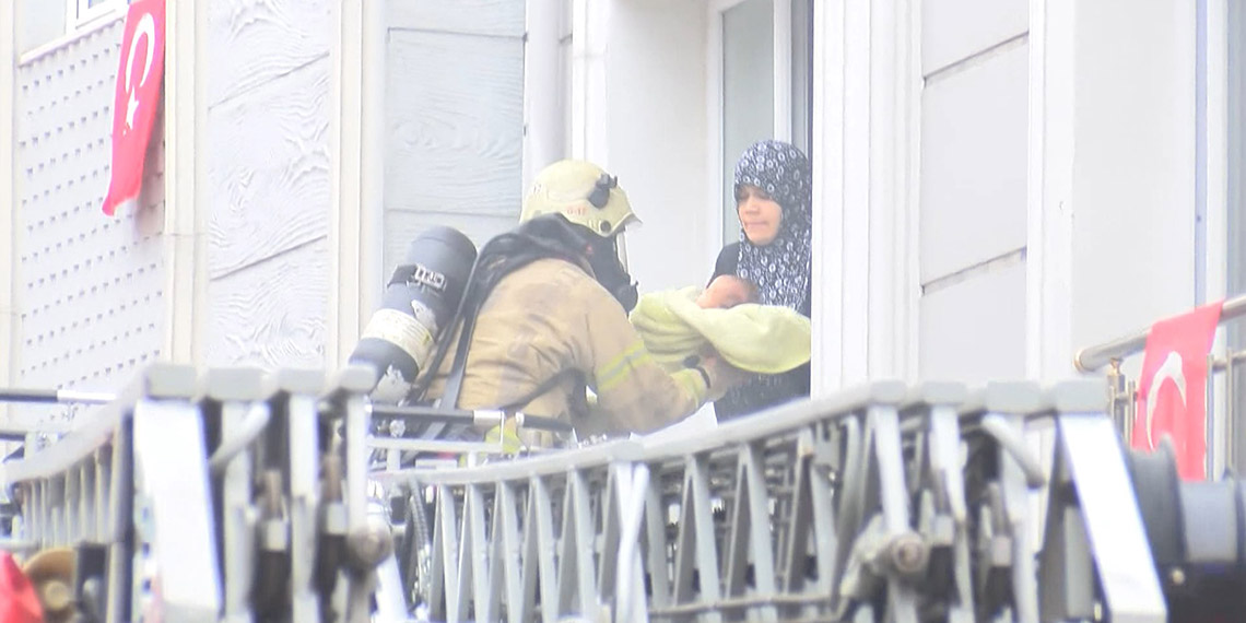 Küçükçekmece’de apartman yangın çıktı. Yangında 3 kişi dumandan etkilenirken üst katta mahsur kalan bir anne ve bebeği itfaiye ekipleri tarafından kurtarıldı.