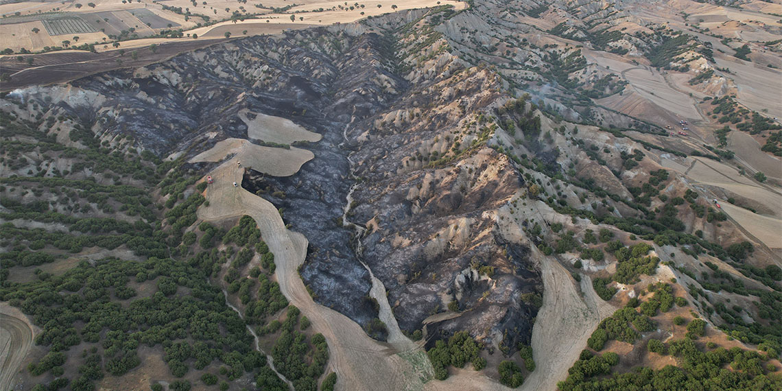 Kula’da arazide çıkan yangın ormanı yaktı; Yangın yaklaşık 5 saatte kontrol altına alınırken, 10 hektar orman küle döndü.