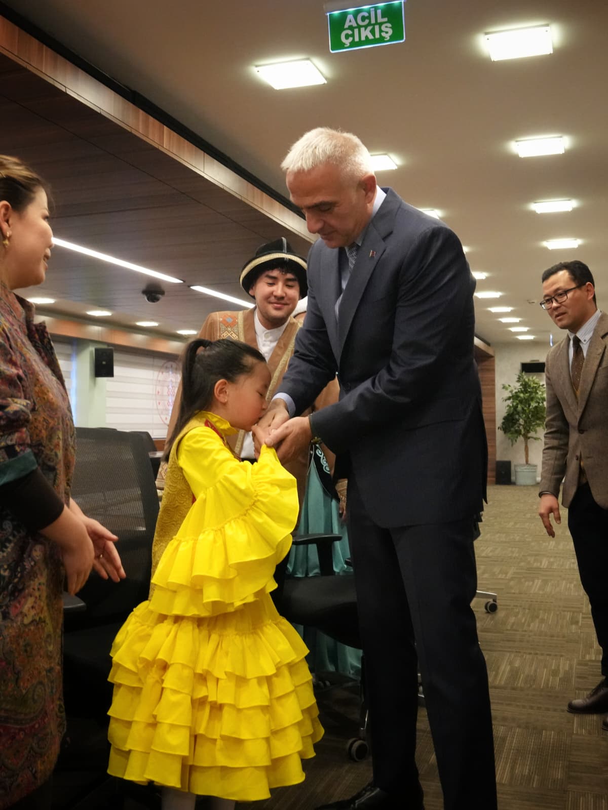 Kültür ve Turizm Bakanlığı, 21 Mart Uluslararası Nevruz Günü kapsamında anlamlı bir buluşmaya ev sahipliği yaptı. Türksoy Genel Sekreteri Sultan Raev ve beraberindeki Türk Cumhuriyetleri heyeti, Kültür ve Turizm Bakanı Mehmet Nuri Ersoy tarafından bakanlıkta kabul edildi. Heyetin karşılanmasıyla başlayan programda Bakan Ersoy’a, Nevruz geleneğinin simgelerinden semeni tepsisi takdim edildi. Sembolik yumurta tokuşturma ritüelinin gerçekleştirildiği buluşmada Türk dünyasından gelen sanatçılar müzik performansları sergilerken hatıra fotoğrafları da çekildi.