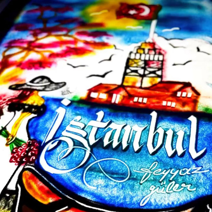 Feyyaz Güler, aslında Hacettepe Üniversitesi Turizm Otelcilik Mezunu daha sonra Anadolu Üniversitesinden İşletme lisans eğitimini tamamlamış. Özel bir şirkette çalışıyor. Çocukluğundan beri karakalem resimlerine çok meraklı olduğunu ortaokul resim öğretmeni Hülya Hocasının mutlaka yeteneğini peşinden gitmesi gerektiği sözlerini bizlere hatırlatıyor. Hayat onu yeteneği doğrultusunda eğitim alma fırsatı tanımamış. Yıllar geçtikçe önce güzel yazı sanatıyla ilgilenmiş. Hat sanatına ilgi duymuş Kendini bu alanda eğitmeye çalışmış. Sonrasında kaligrafi sanatında bayağı ilerlemiş kumlar ile tanıştığında olan tüm yeteneklerini harmanlamış.