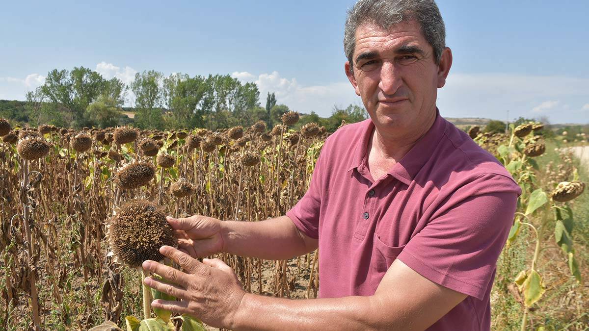 Geçen sene yaşadığımız kuraklıkta yüzde 70 verim kaybını bu sene buğdayda karşıladık, ayçiçeğinden de karşılayacağımızı tahmin ediyorduk fakat yağışların kesilmesi, son 10 gündür de bölgede görülmemiş aşırı derecede 40-45 derece sıcaklık, ayçiçeklerinin zamansız olmasına neden oldu. Ayçiçeklerinin olma zamanı vardı, o zaman da ayçiçeği sapında su olduğu için su istemez, o suyla geliştirdiği taneyi tutar ve bu tanelerde verimin yüksek olmasını sağlardı. Fakat havaların aşırı sıcak olması, lodosun esmesi ayçiçeklerini zamansız olgunlaşmasına neden oldu, ortaların boş kalmasına neden oldu. Tahminim bu yıl ayçiçeğinde yüzde 30 ile yüzde 40 verim kaybı olacağını tahmin ediyorum. Bazı bölgelerde ayçiçeğin kafaları gelişmiş olsa da içleri tane yapmadığı için boş. Kaybımız büyük olacak” dedi.